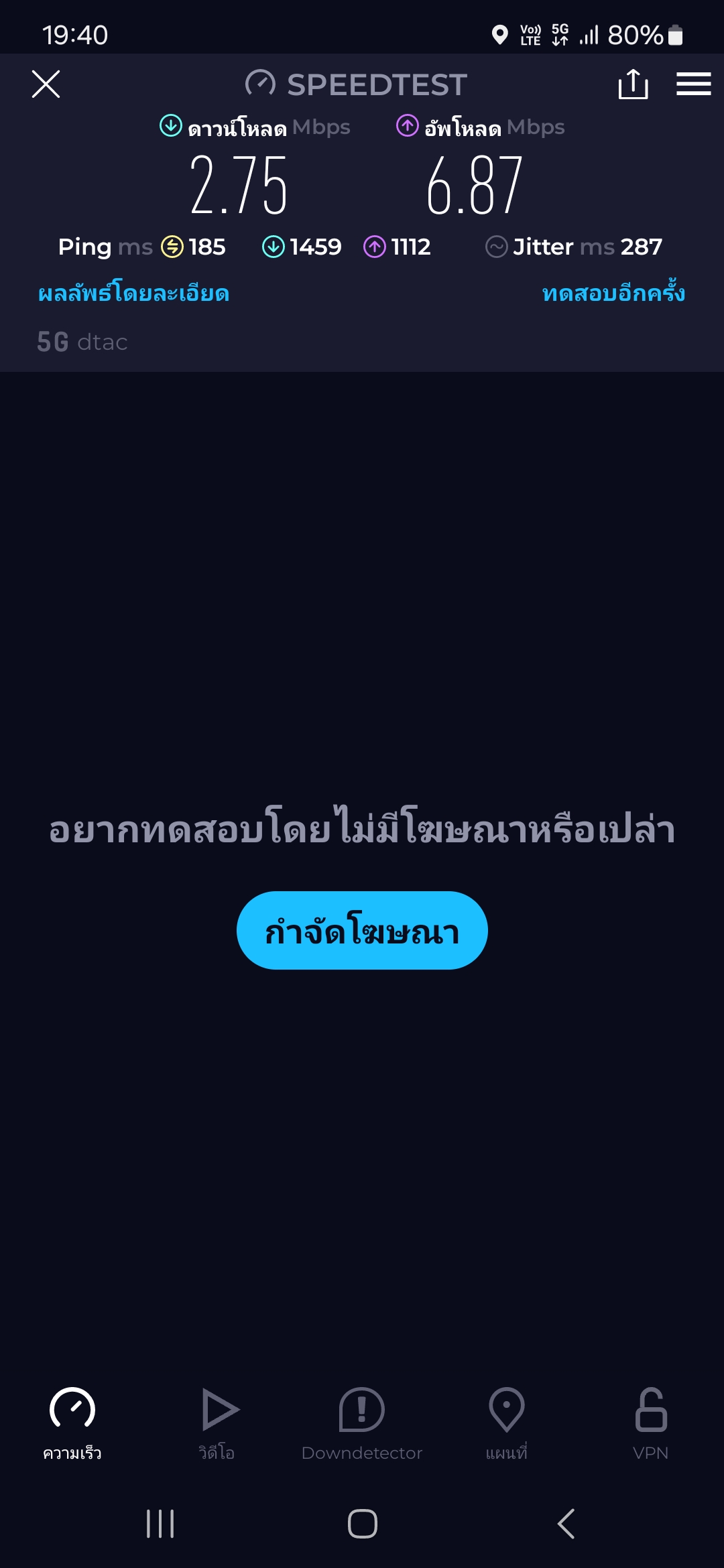 เน็ตดีแทคนี้ห่วยไปเรื่อยเลยสมัครเน็ตความเร็วสูงสุดแต่เน็ตวิ่งอยู่ไม่ถึง10เมกห่วยแตกกมาก