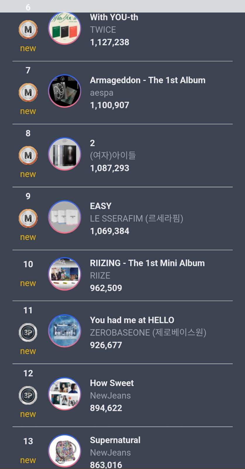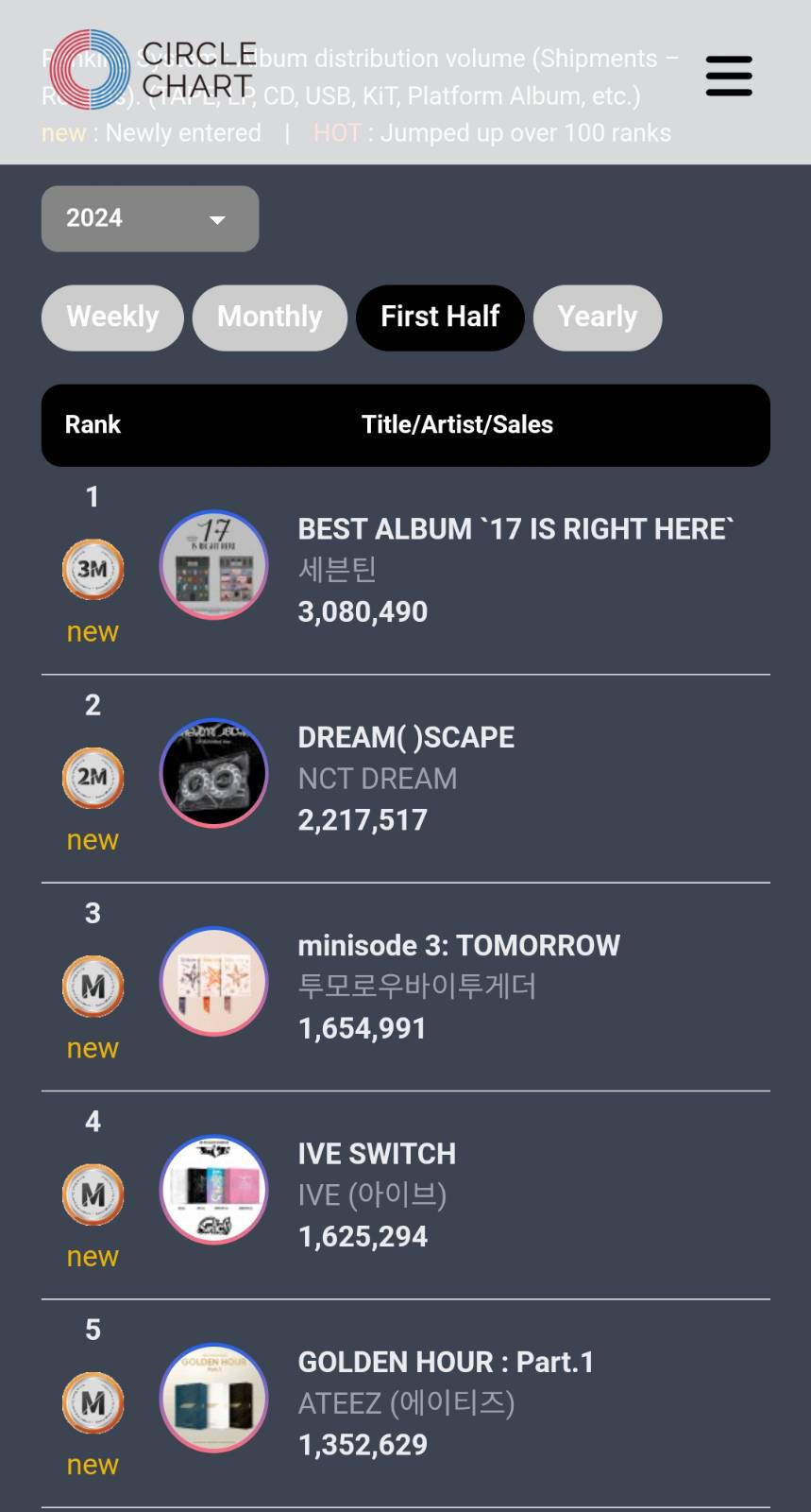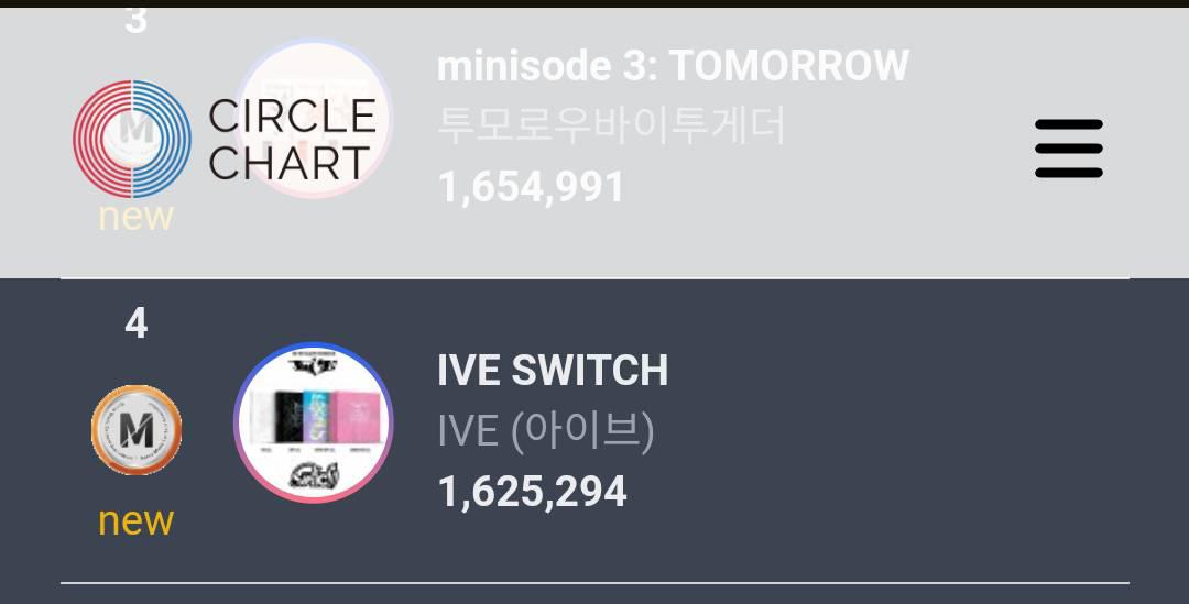 อัลบั้ม <IVE SWITCH> ครองอันดับที่1 อัลบั้มจากเกิร์ลกรุ๊ป และเป็นอันดับที่4 จากอัลบั้มทั้งหมดที่มียอดขายสูงที่สุดในครึ่งปีแรกของ Circle Chart ด้วยยอดขายรวม 1,625,294 copies