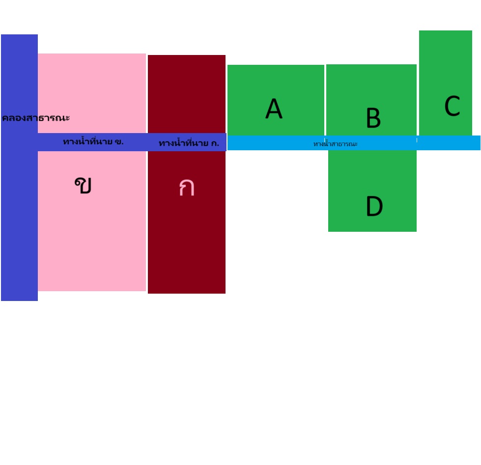 เรื่อง คือ มีชาวนาทำนาหลายเจ้า แต่ละเจ้ามีที่ของตัวเอง มีนาย A,B,C,D โดยติดกับทางน้ำสาธารณะ ทำให้สามารถปล่อยน้ำลงทางน้ำสาธารณะนี้ได้