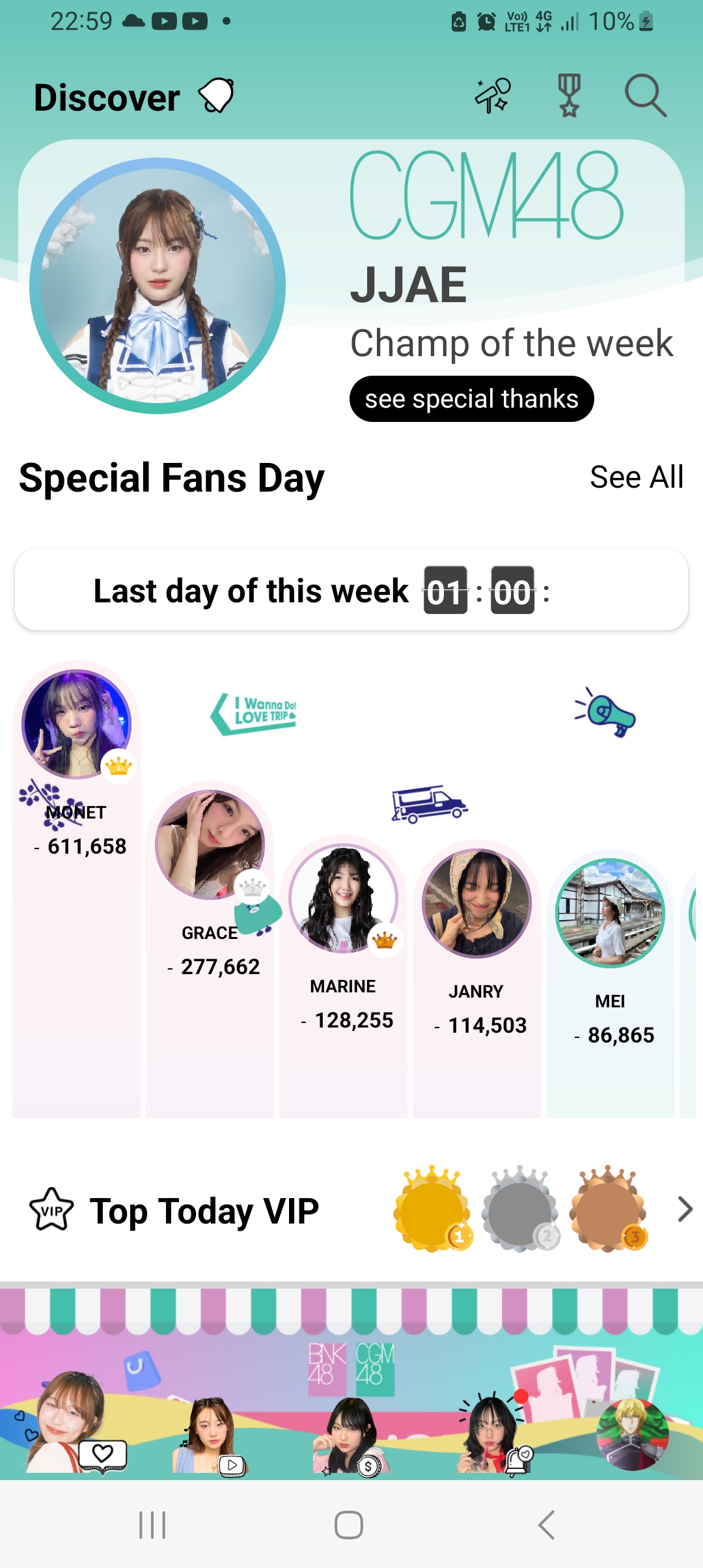 Champ of the week หลังเที่ยงคืนนี้ ต่อจาก JJae คงเป็น Monet bnk อันดับ 2 ตามมาห่างคือ น้องเกรซ / รูปน้องลูกเกด