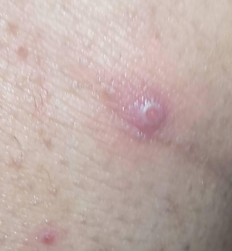 ก่อนหน้านี้เจ็บแก้มก้นค่ะคิดว่าคงเป็นสิวพอดูก็เป็นสิวตุ่มแข็งๆกดละเจ็บค่ะวันที่2มันเจ็บมากกว่าวันแรกเลยดูมันเป็นแดงๆรอบสิวเหมือนโดนตัวแมลงมีพิษกัด วันที่3มีลักษณะแดงมากคงคิดว่าไม่ใช่สิวแล้ว วันที่4มีอ
