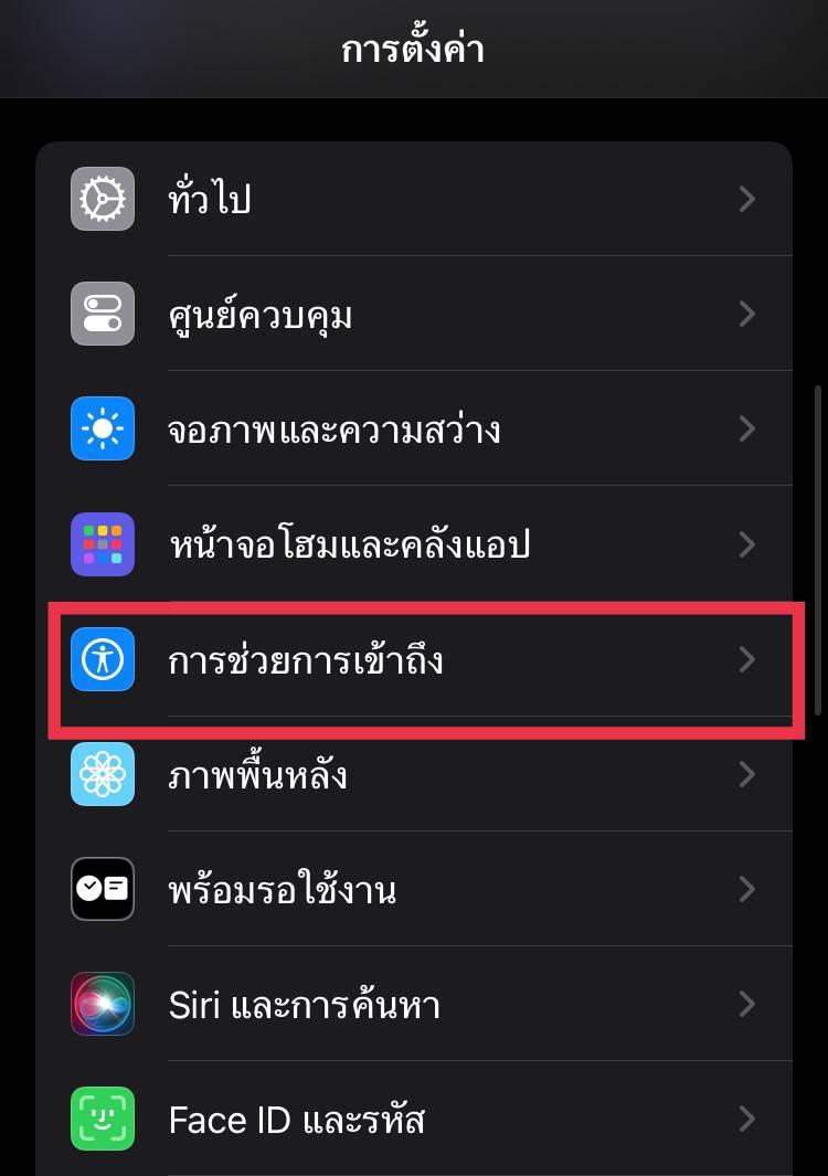 มาดูวิธีตั้งค่ากันเลย ให้เลือก การช่วยการเข้าถึง ตามกรอบสีแดง