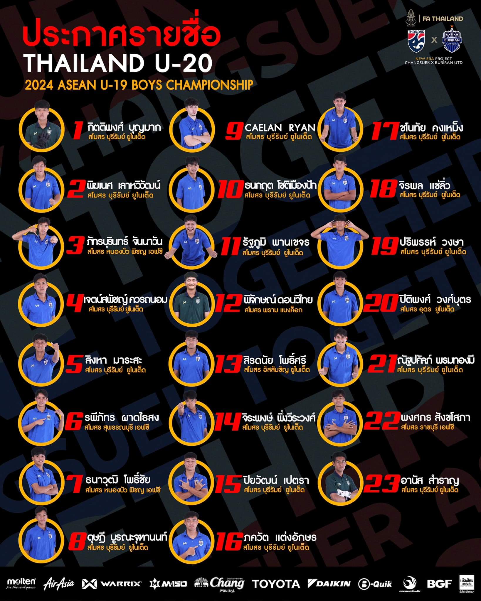 ไลน์อัพ ชุดจัดเต็ม ทีมชาติไทย U23