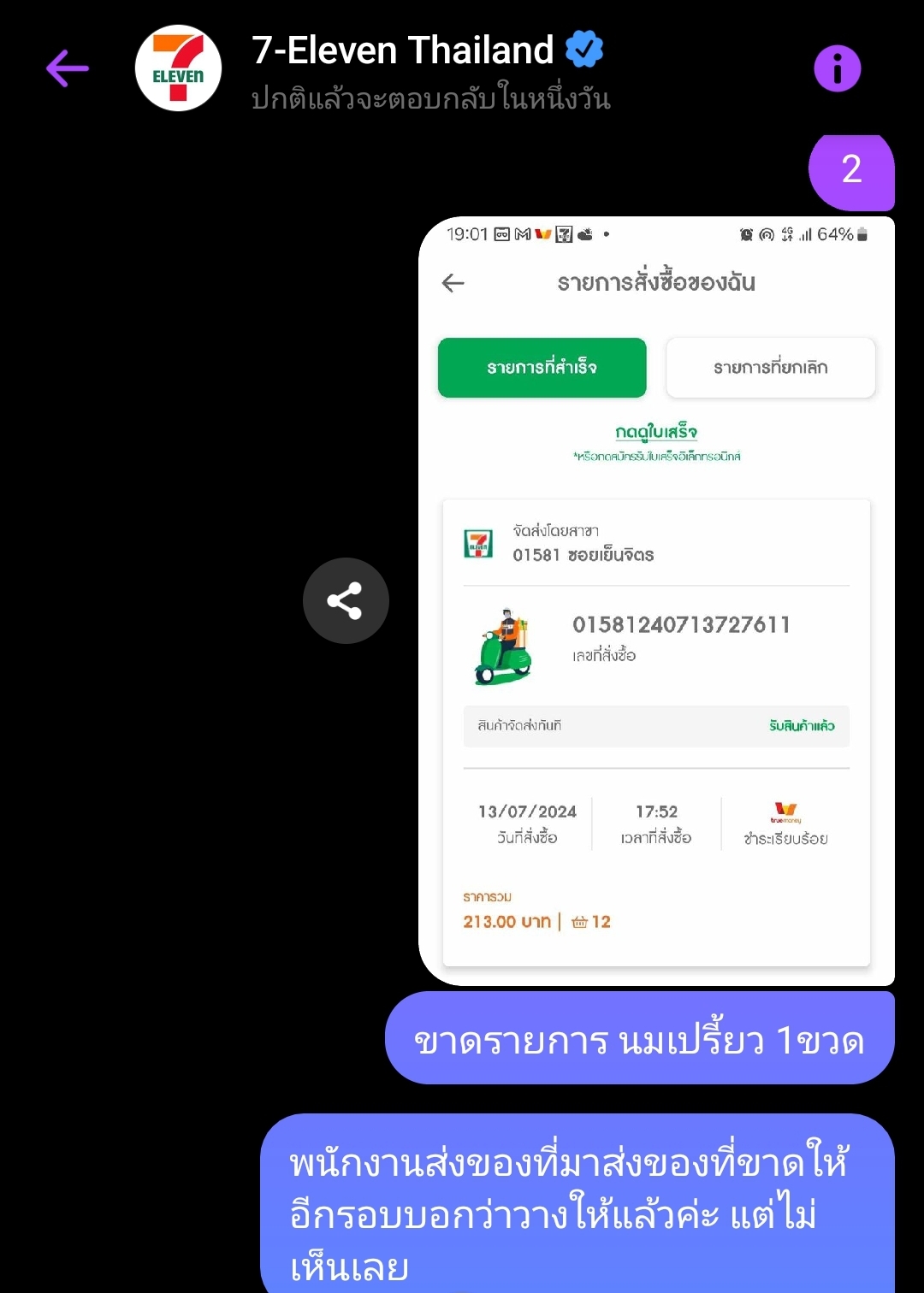 สั่งdeliveryผ่านapp7-elevenไม่มีคิดต่าส่งแต่พนง.โทรมาต้องมีขั้นต่ำ