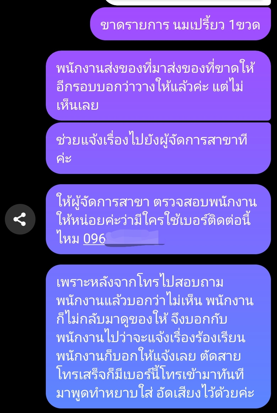 ล่าสุดสพนักงานตรวจสอบให้แล้วค่ะบอกว่าไม่ใช่พนักงานที่มาส่งของตอนนั้นทำให้ไม่สามารถร้องเรียนได้ พอดีเป็นคนที่มาเปิดซิมโดยใช้ชื่อทางบริษัทเพื่อเปิดใบกำกับภาษี เลยทำให้เข้าใจผิด เราผิดเองขออภัยทุกท่านที่