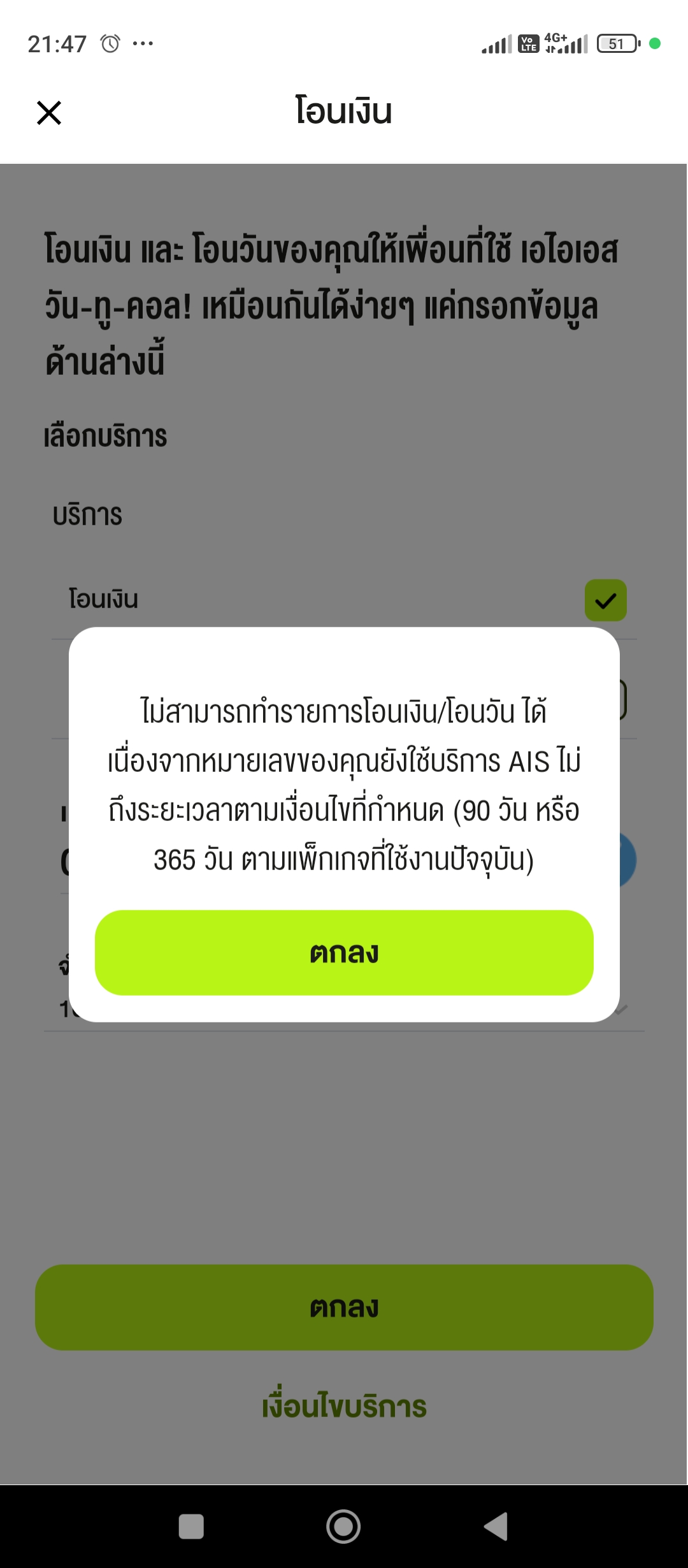 ใช้งาน AIS ครบ365วันแล้วแต่โอนไม่ได้ทำไงดีคะ