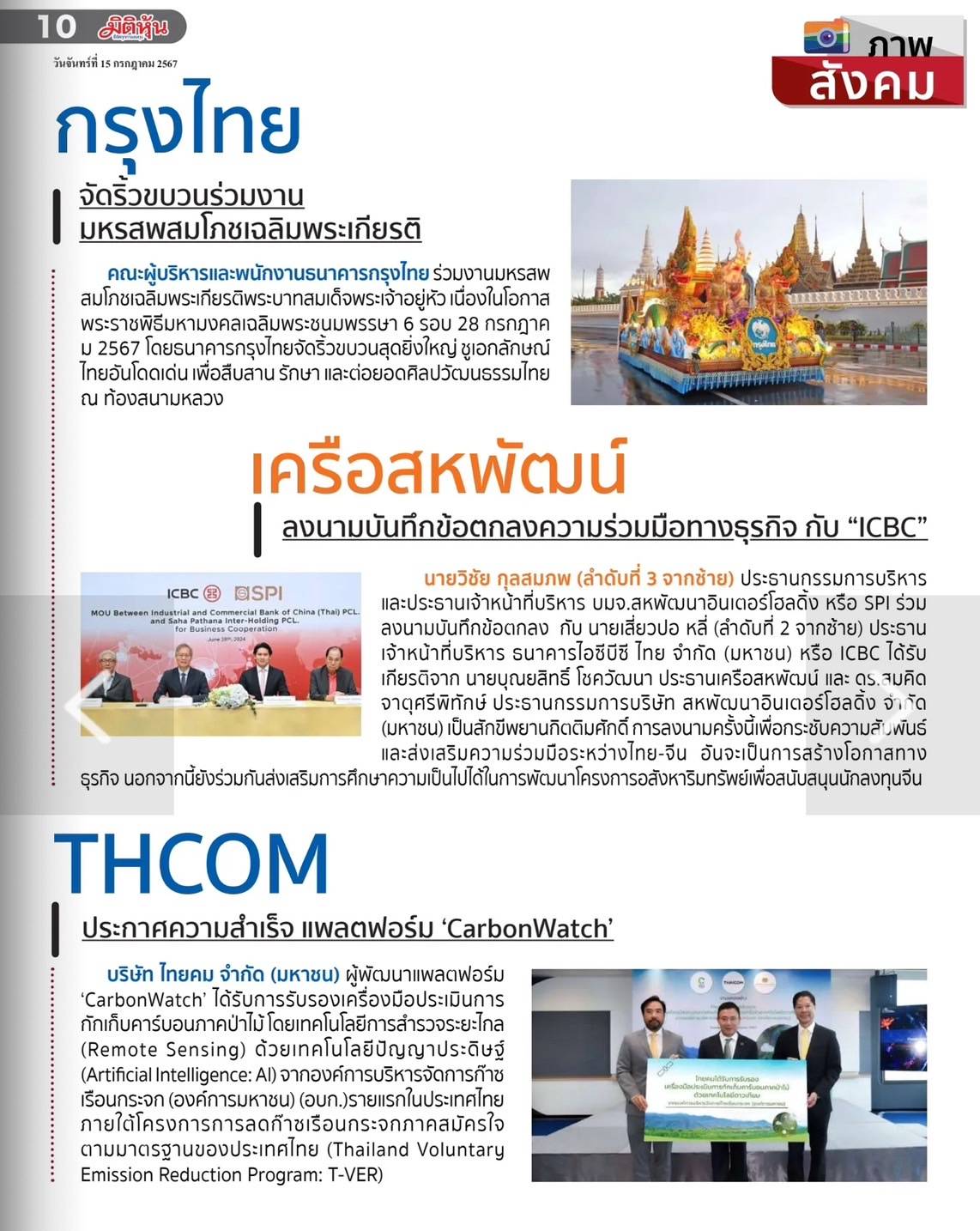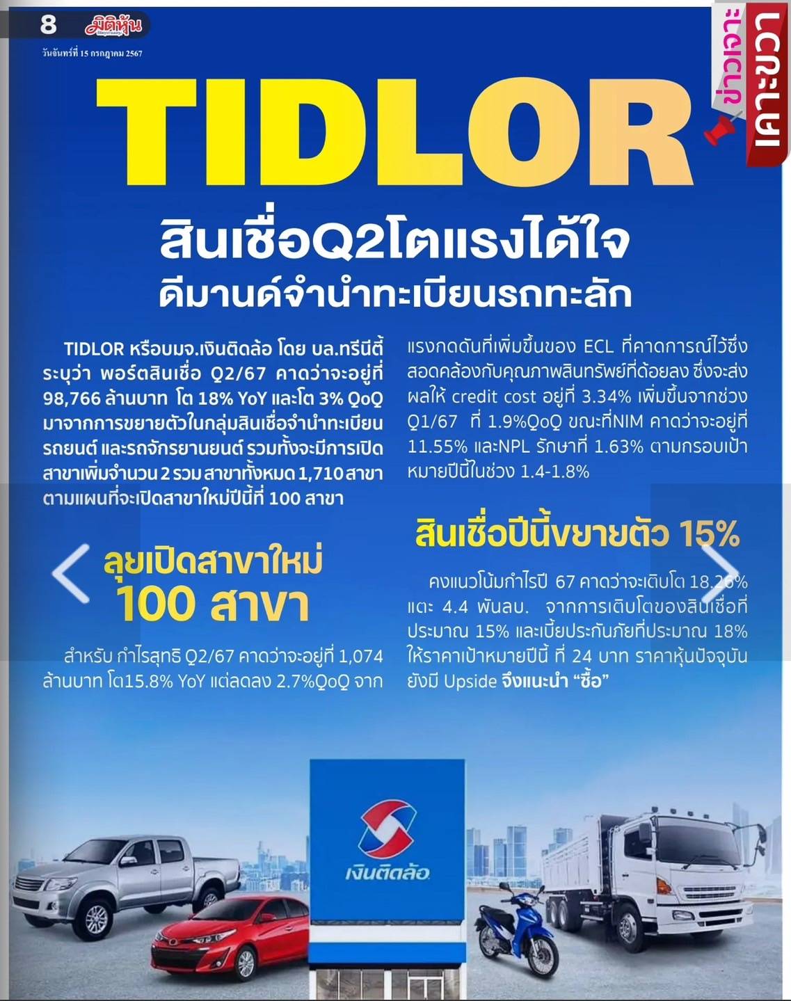 กรอบการลงทุนวันที่ 15 กค 2024