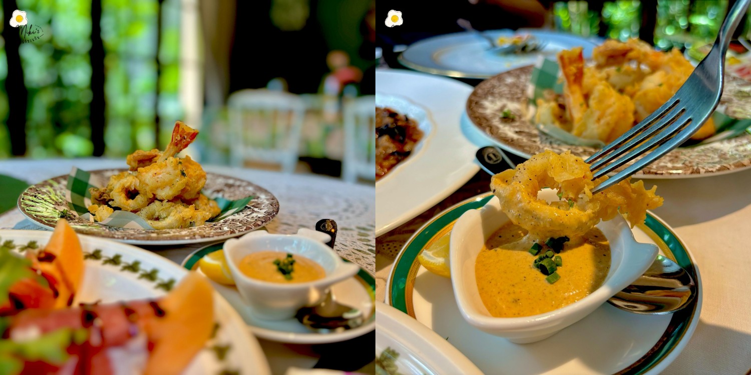 Calamari 380.- คารามารีหมึกและกุ้ง กรอบนอกนุ่มใน ตัวแป้งมีรสเค็มๆมันๆ