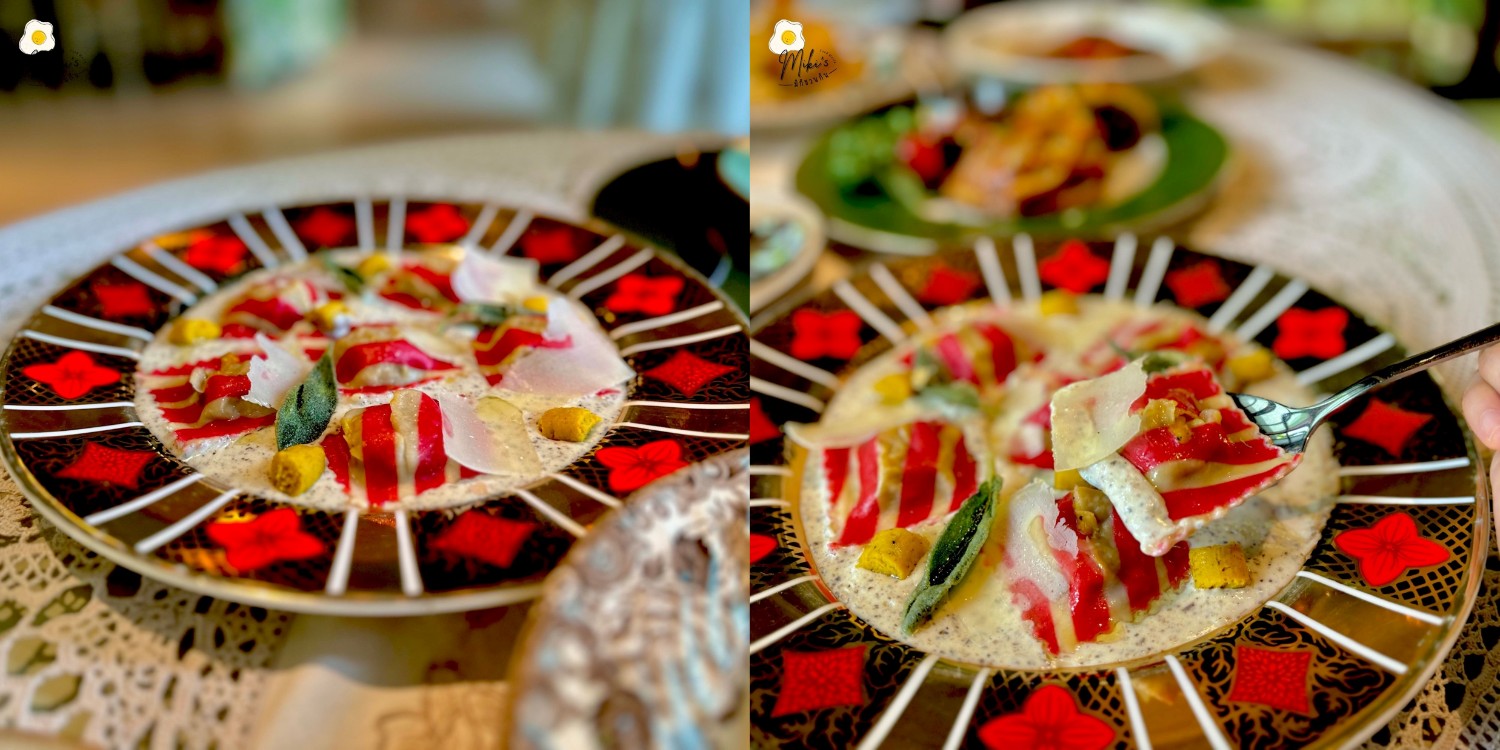 ราดด้วยซอสทรัฟเฟิลรสละมุน เป็นจานหลักที่ใครชอบรสหวาน นวล ครีม จะรักจานนี้