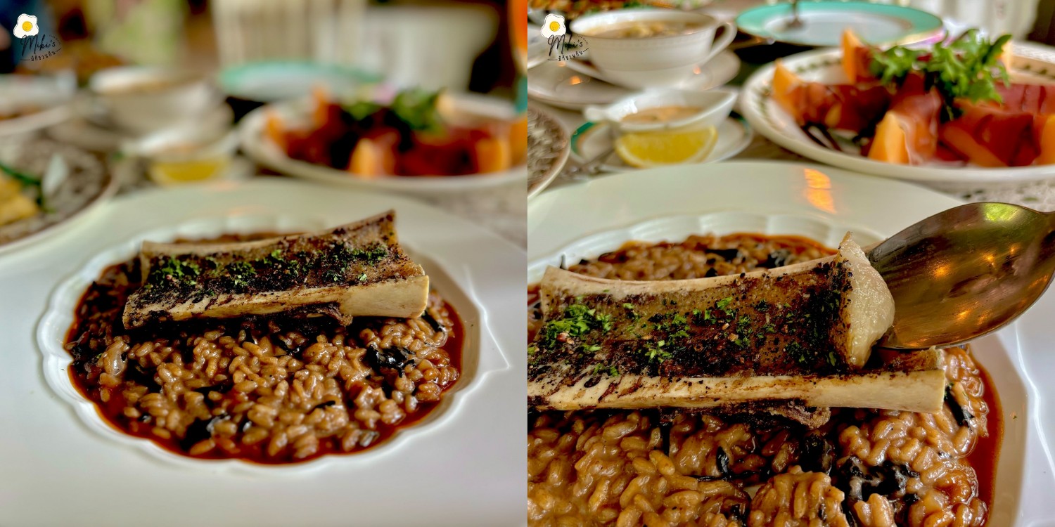 Wild Mushroom Risotto with Bone Narrow 890.- ริซ็อตโตนุ่มหนึบที่มาพร้อมกับเห็นพอร์ชินีผัดกับไวน์แดงหอมๆ