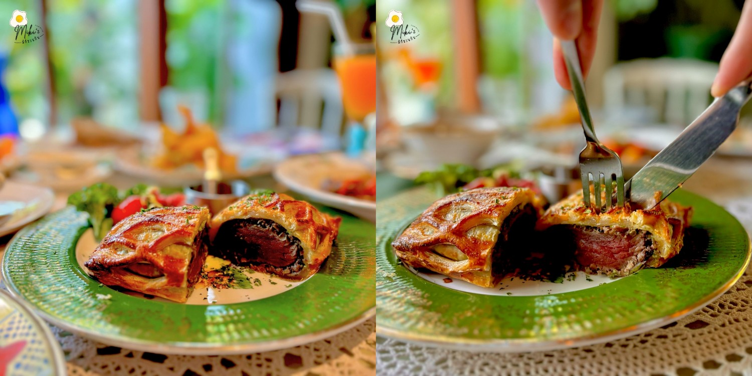 ให้สัมผัสทั้งความฉ่ำที่ออกมาจากตัวเนื้อในระดับ medium rare และความกรอบของแป้งพายที่ไม่หนาและไม่บางจนเกินไป