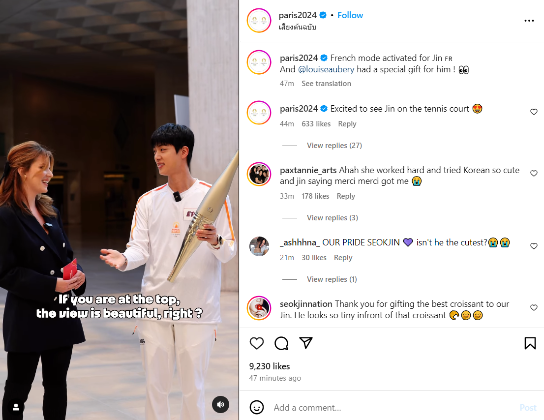 🎤 JIN BTS ให้สัมภาษณ์กับสื่อ 🗼 Paris 2024