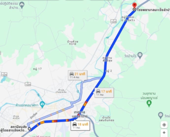 จากสถานีขนส่งลำปาง ไปศูนย์มะเร็งครับ