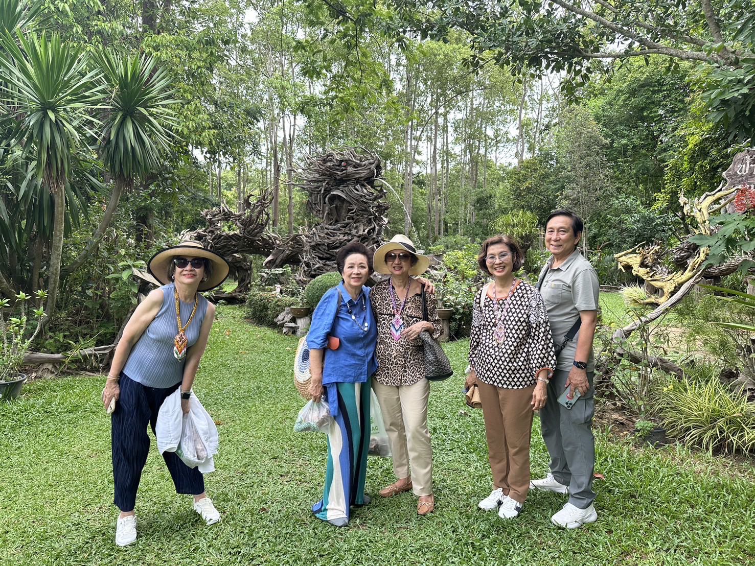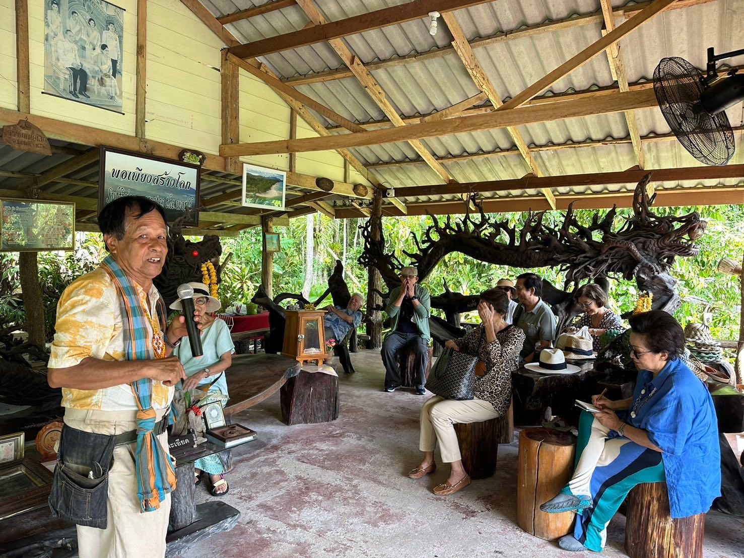 คุณลุงเป็น Entertainer ชั้นยอด สามารถเล่าเรื่องไม้มหัศจรรย์นี้ได้อย่างชวนติดตาม มีมุขสนุกสนานและความรู้ครอบคลุม และเพราะเกษียณอายุจากการเป็นครูสอนภาษาอังกฤษ จึงสามารถแต่งและร้องเพลงภาษาอังกฤษเกี่ยวกับเทพทาโรได้อย่างน่าฟัง ถ้า Time Magazine ได้มาเจอลุง คงจะได้ขึ้นปกก่อนนายกเศรษฐาเป็นแน่เพราะเป็น Super Salesman กว่า ที่ไม่ได้แต่โม้เก่งเท่านั้น หากยังมีผลงานที่จับต้องได้ให้เป็นที่ประจักษ์ ดังจะเห็นได้จากการที่เหล่ายายกะตาได้รุมซื้อผลิตภัณฑ์ของลุงไปจนหอบไม่ไหวไม่เว้นแม้แต่สร้อยลูกปัดแบบที่ใส่รำโนราห์ ซึ่งลุงใส่เป็น presenter อันเป็นฝีมือของวิสาหกิจชุมชน (ย่ายายวัย 70 -80 ที่ใช้เวลาว่างนั่งร้อยลูกปัด)ก็ถูกพวกเราสอยมาเป็นเจ้าของจนหมดเกลี้ยงทั้งร้าน คุณลุงภูมิใจมากที่แม้ว่าอายุตั้ง 72 แล้ว ยัง สามารถดูแลและ promote สวน ได้อย่างคล่องแคล่ว พอบอกว่ากลุ่มยายกับตาทั้งแปดนี่ทุกคน อายุแก่กว่าลุงทั้งนั้นนะจ๊ะ ลุงเหวอไปเลย และปวารนาเรียกพวกเราว่าคุณพี่! 555