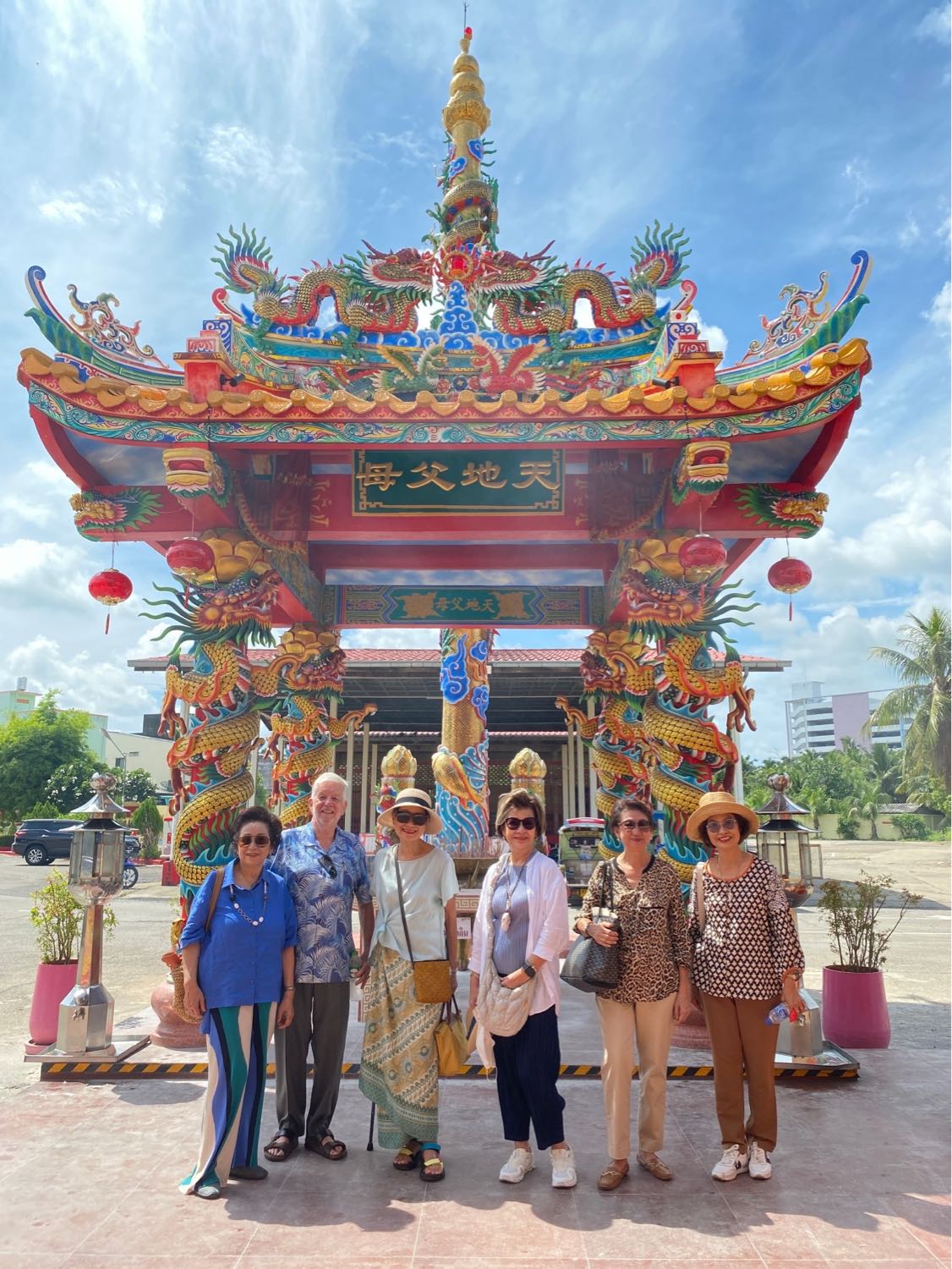 รายการวันนี้เริ่มด้วยการไปสักการะสิ่งศักดิ์สิทธิ์ประจำเมืองนี้เพื่อความเป็นสิริมงคลด้วยการขึ้นรถตุ๊กตุ๊กหัวกบสีเขียวไปที่ศาลเจ้าท่ามกงเหยี่ยที่ตำบลทับเที่ยง ซึ่งขึ้นชื่อกันว่าดังทางให้โชคลาภ เอ! ตำบลนี้ฟังดูคุ้นหูนะ อ้อ! ชื่อคุณสุรินทร์ โตทับเที่ยงแห่ง ปลากระป๋องปุ้มปุ้ยไง คงเกิดที่นี่กระมัง ไกด์ถามว่า‘‘คุณป้ารู้จักคุณสุรินทร์เหรอคะ?’’ อ๋อ! เปล่าหรอก เพราะซื้อปลากระป๋องยี่ห้อปุ้มปุ้ยกินบ่อยจึงรู้สึกคุ้นเคยอ่ะ ต่อมาก็แวะไปสักการะพระอารามหลวง ที่วัดกะพังสุรินทร์ เป็นอันเสร็จเรื่องทำบุญไป ก่อนต่อด้วยภาคบันเทิง