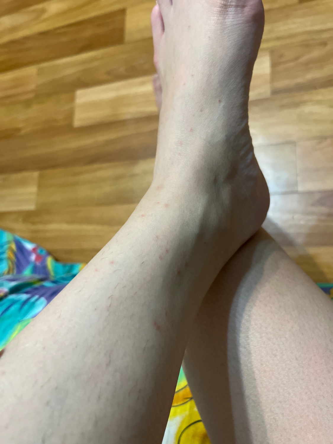 มีผื่นแดงขึ้นที่เท้า,ขา,แขนและที่ตัว พอมีใครรู้บ้างไหมคะว่าผื่นแบบนี้คือผื่นอะไร. มีอาการคันนิดหน่อยค่ะ.