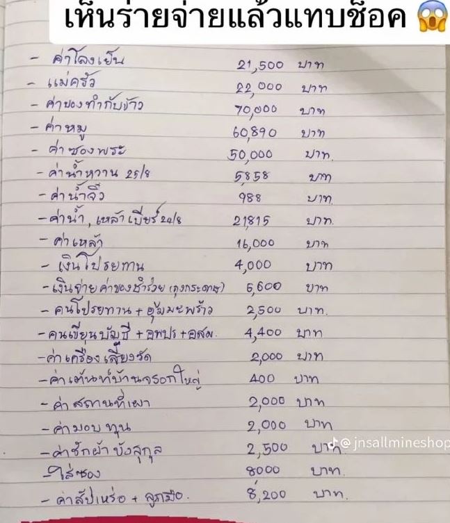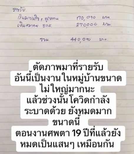 50,000 บาท เพราะเป็นเงินหลายเจ้าภาพหลาย ๆ คน หลายคืนที่จัดงาน บางงานมีเจ้าภาพถึง 20 คน