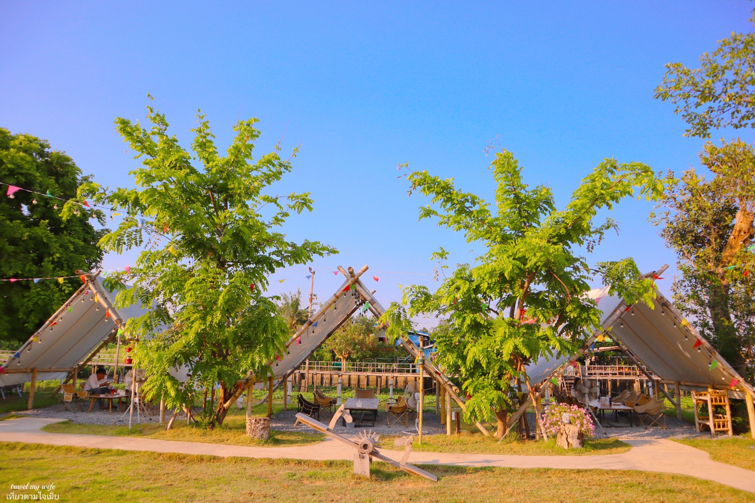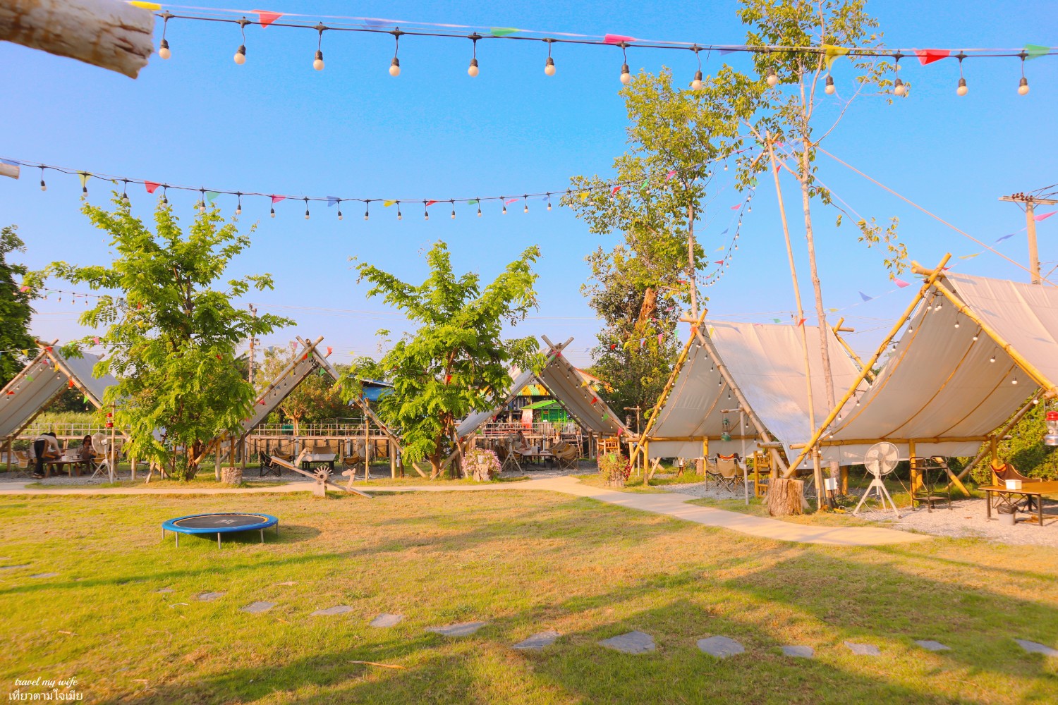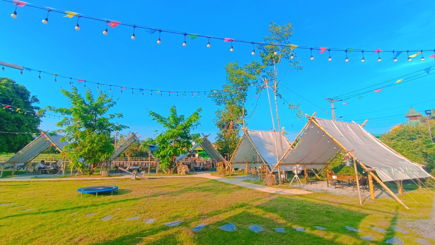 🏡ส่วนโซนของร้าน มีโซนเต้นท์สามเหลี่ยมแคมป์ปิ้ง โซนโต๊ะริมน้ำ โซนห้องแอร์ หรือนั่งชิลล์ ในสนามหญ้า ฟังเพลงเพราะๆช่วงเย็นคือดีมากครับ