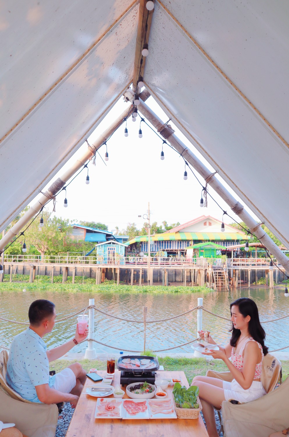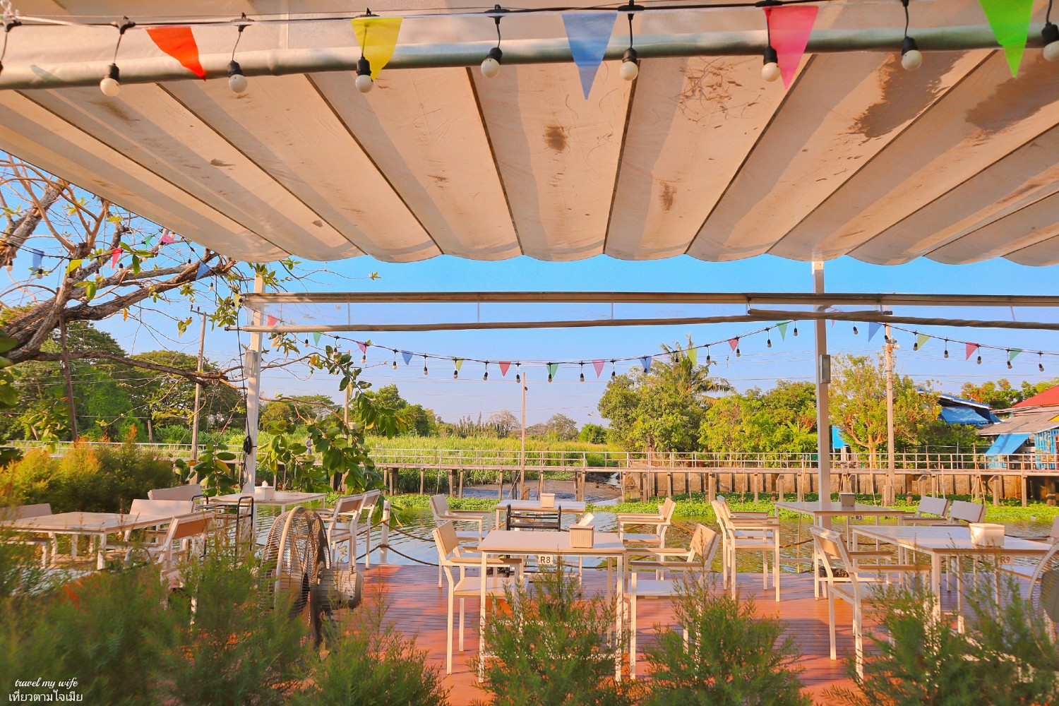 ร้านอาหารและคาเฟ่ริมคลองย่านบางบัวทอง ตัวร้านเป็นสีขาว ตกแต่งแบบมินิมอล บรรยากาศรายล้อมด้วยสีเขียวดูร่มรื่น มีดนตรีสดตอนเย็น มีลานสนามหญ้ากว้างสำหรับจัดเลี้ยง เด็กๆวิ่งเล่นได้อีกด้วย