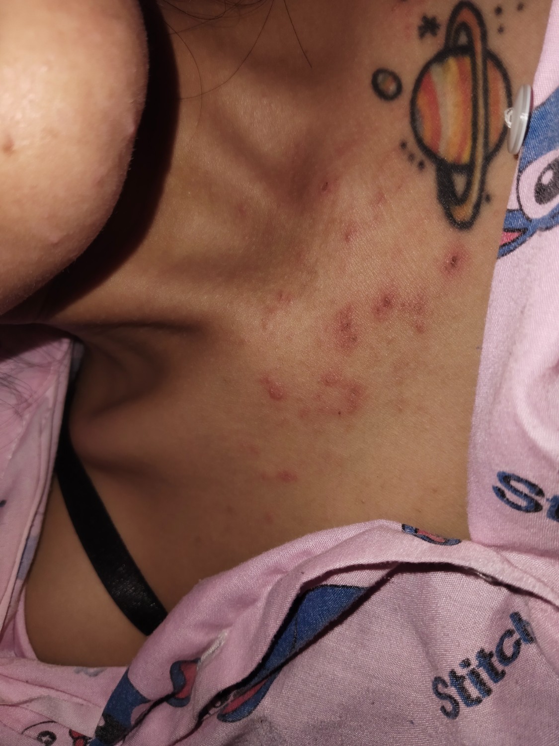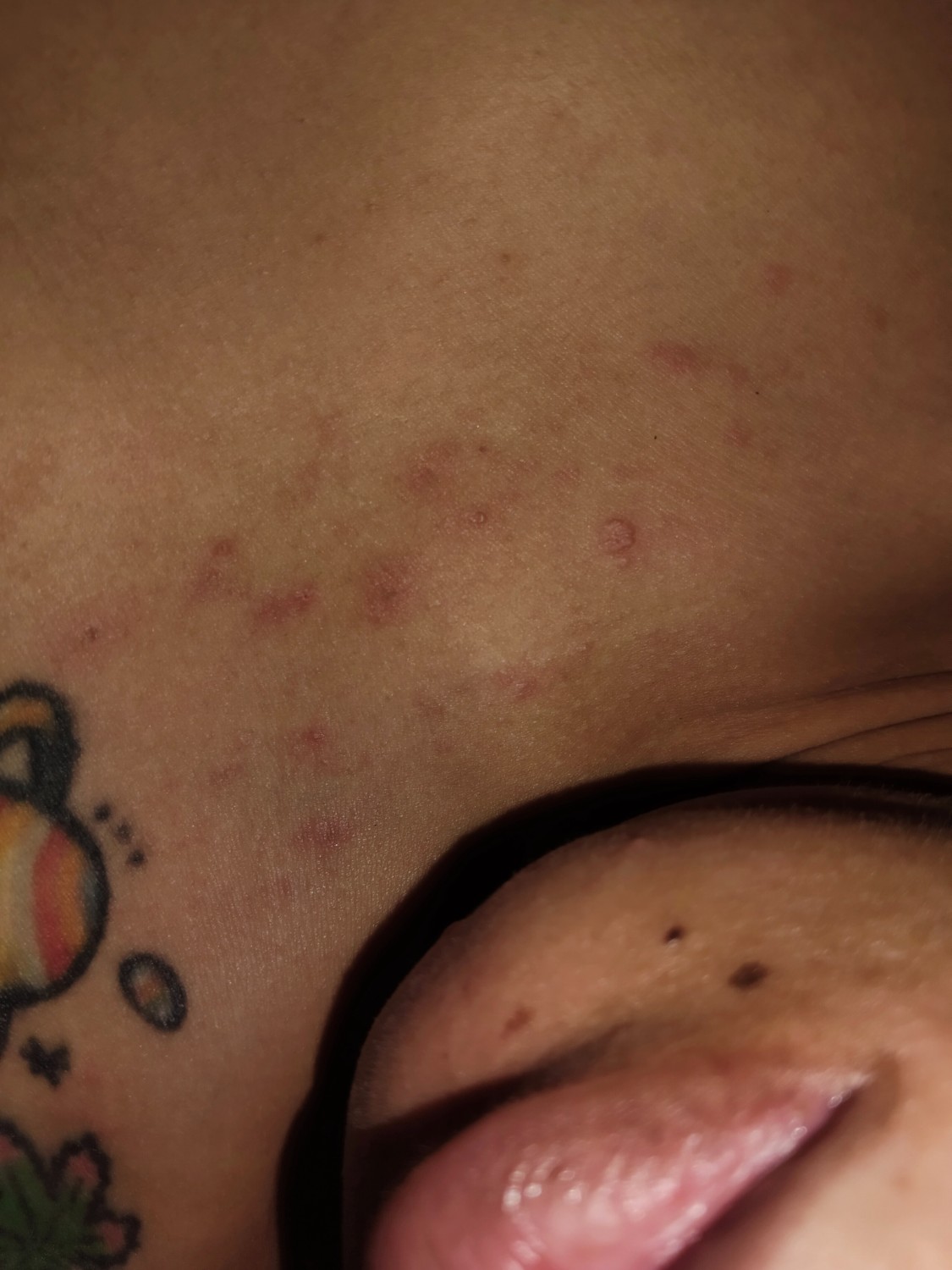 ขออนุญาตถามค่ะ แบบนี้คือเป็นอะไรคะ มีตุ่มคันขึ้นเลื่อยๆเเล้วเป็นตุ่มน้ำ รูปวันที่1-3 แล้วก็วันนี้วันที่4ค่ะ