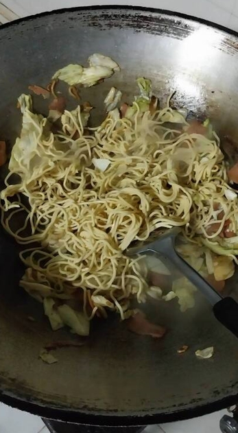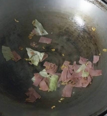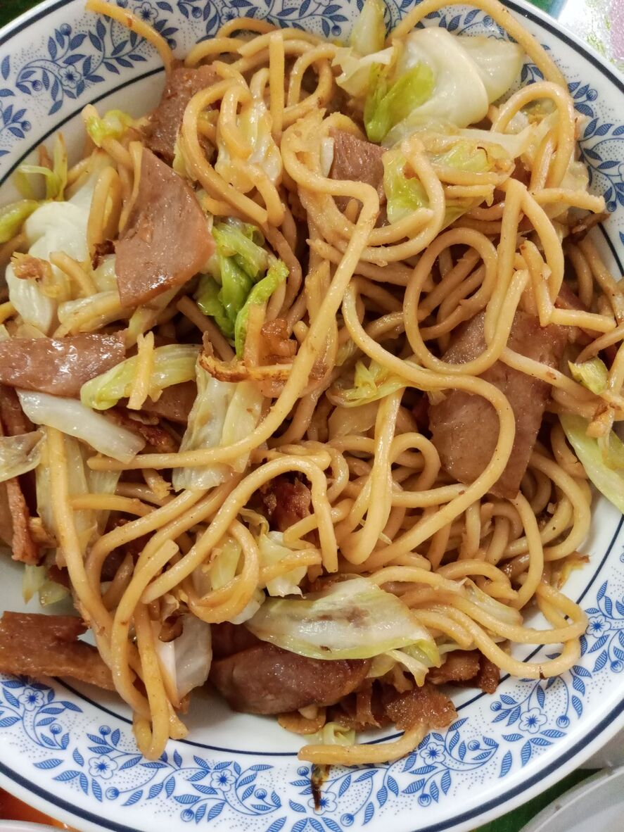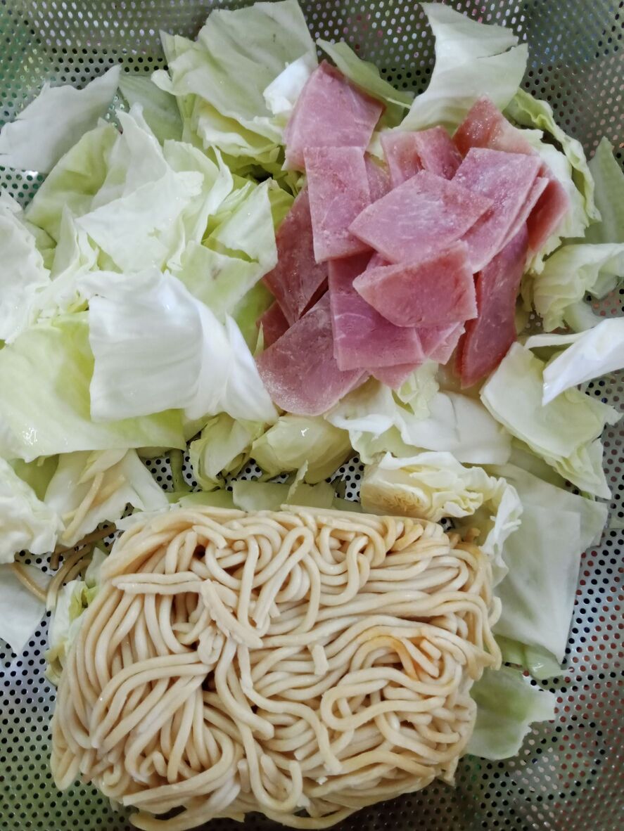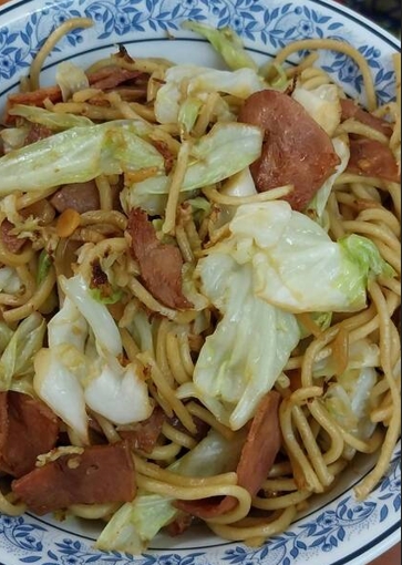 แฮมกับเส้นหมี่ไทเป รสชาติเข้ากันดีกับกะหล่ำปลีกรอบ ๆ
