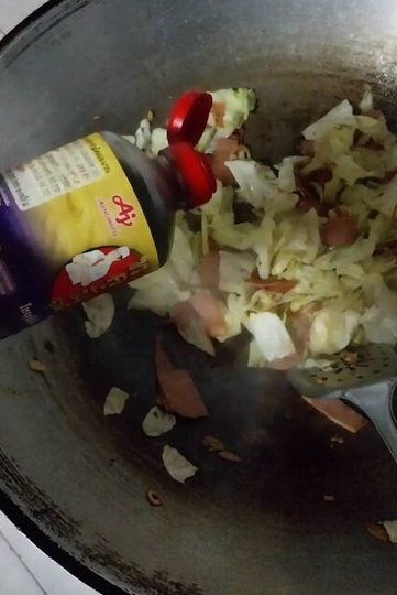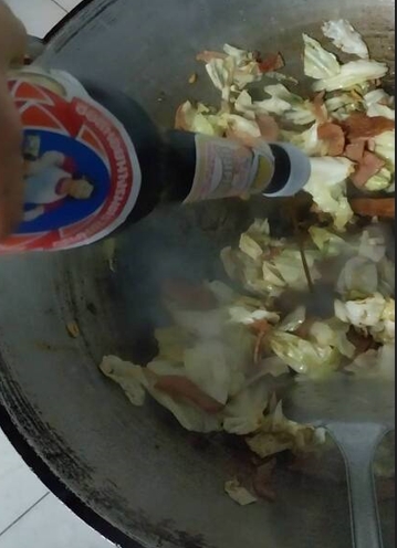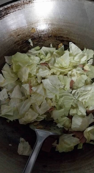 ใส่กะหล่ำลงไป แล้วผัดให้เข้ากัน