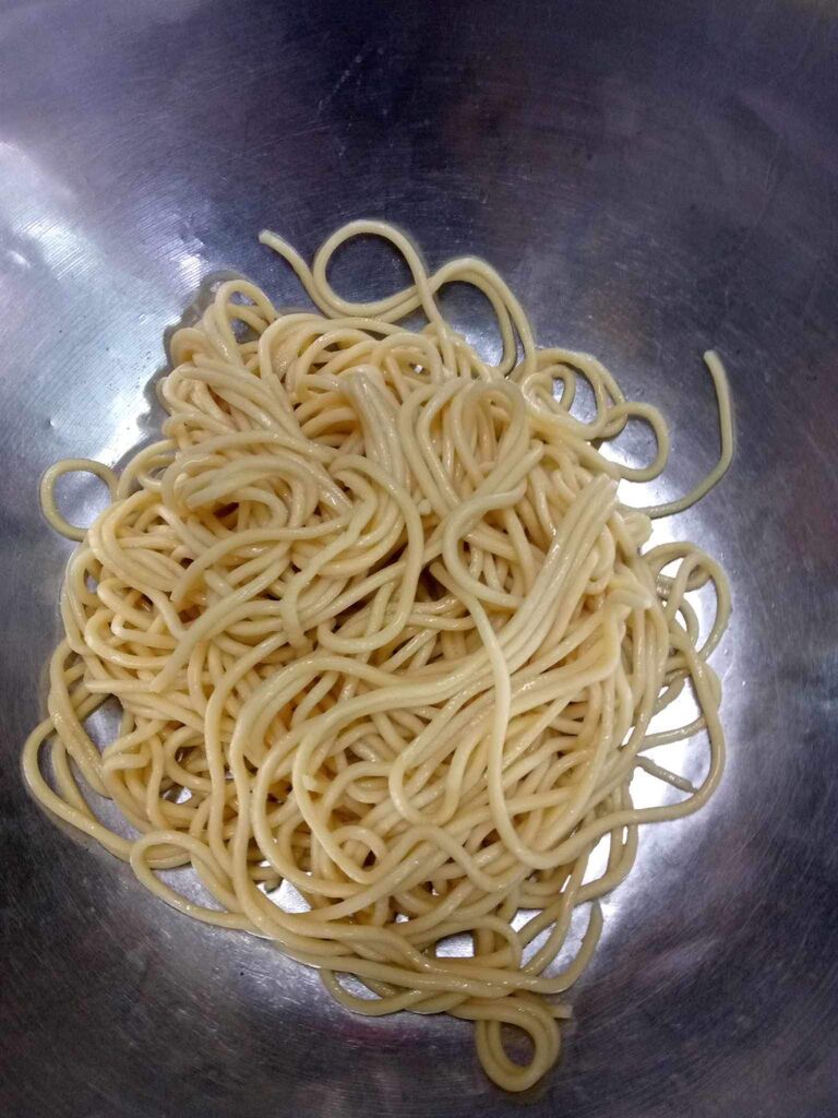 เส้นหมี่ไทเป ต้องนำไปลวกน้ำ เพื่อเอาความมัน และ เศษแป้งส่วนเกินออก