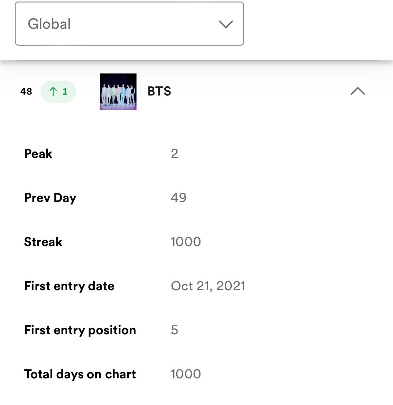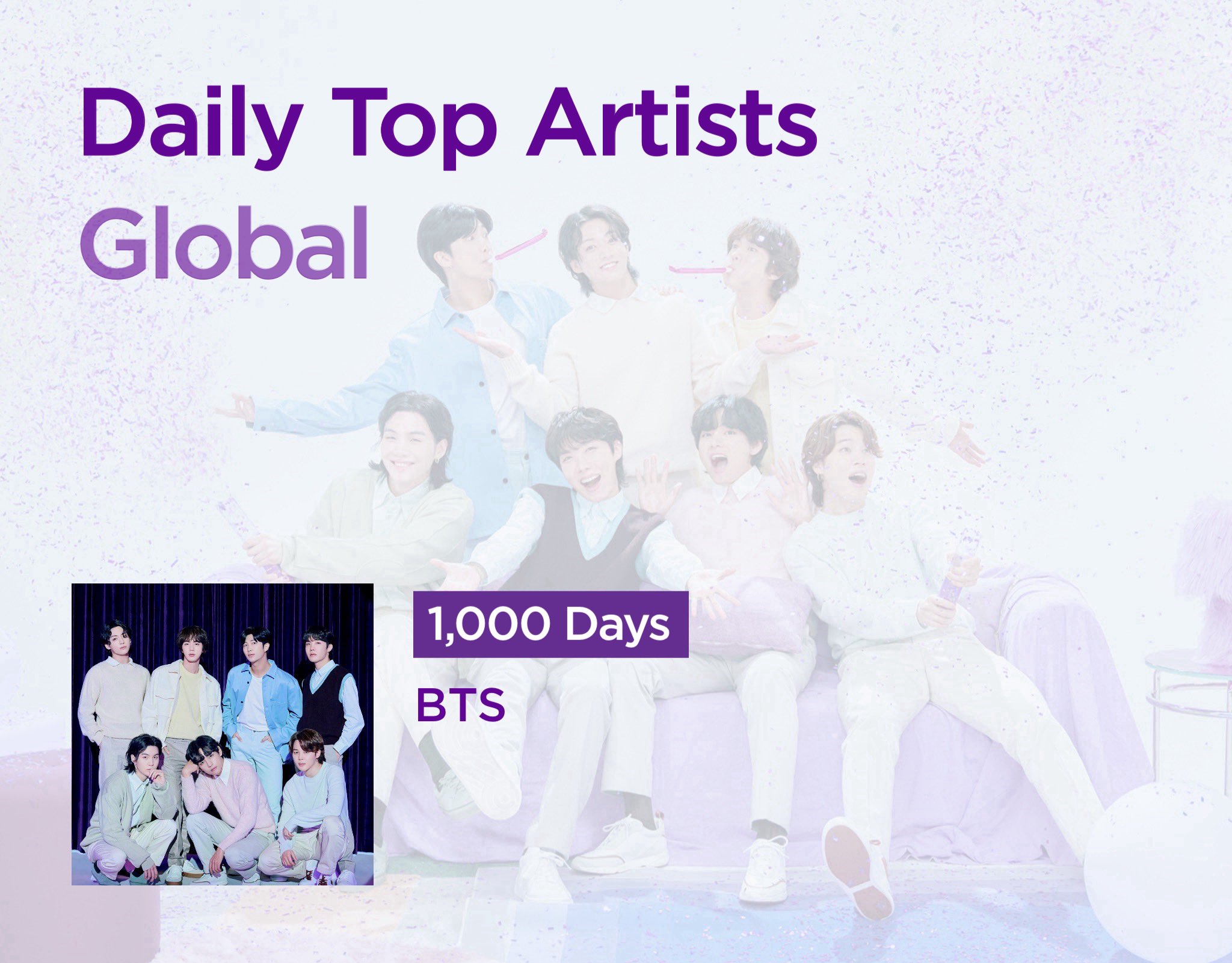 ✨BTS กลายเป็นศิลปิน K-Pop กลุ่มแรกและกลุ่มเดียวที่ติด Spotify's Global Top Artists Chart นานถึง 1,000 วัน!