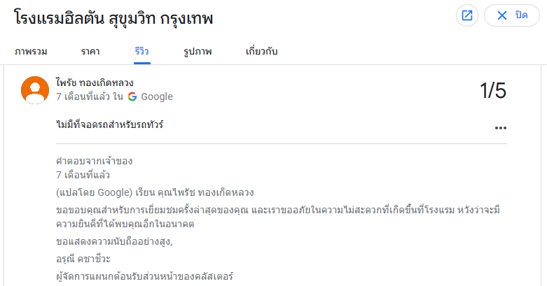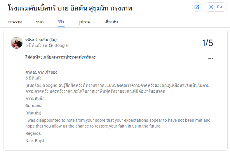 ผมเข้าใจและตระหนักดีว่ารีวิวเป็นการแสดงความเห็นของผู้ใช้บริการที่เสียเงินไป ก็ย่อมคาดหวังสิ่งที่ดีกลับมา