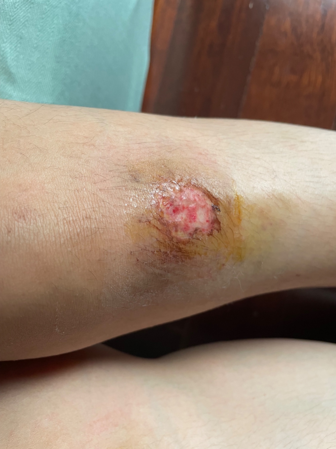 *มีการอธิบายถึงเลือดเเละหนองค่ะ* สวัสดีค่ะ เมื่ออาทิตย์ที่เเล้วเรารถล้มเเล้วขาไปโดนท่อรถพอดี เนื้อหลุดไปเลยค่ะไม่เเสบไม่เจ็บเลยตอนเพิ่งโดน เราก็ล้างแผลฆ่าเชื้อป