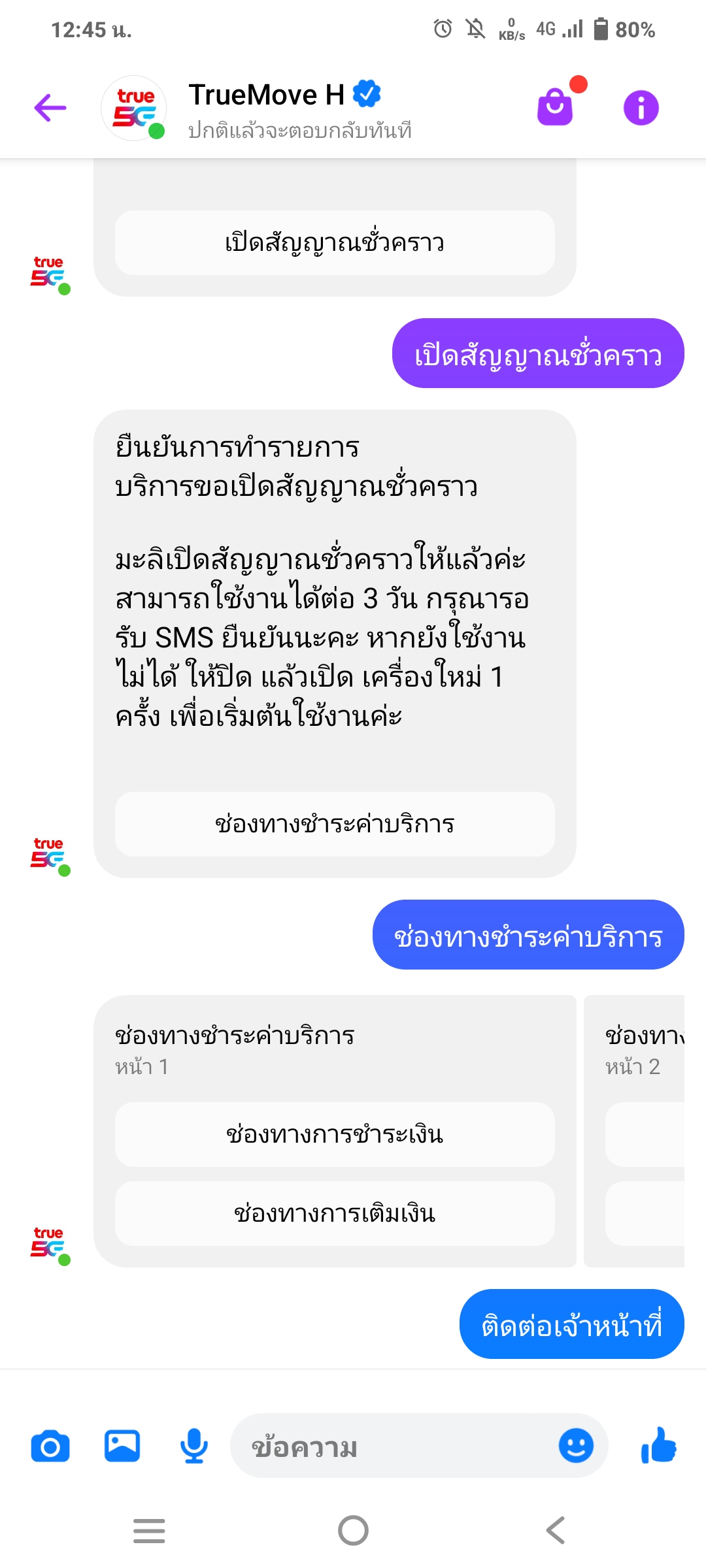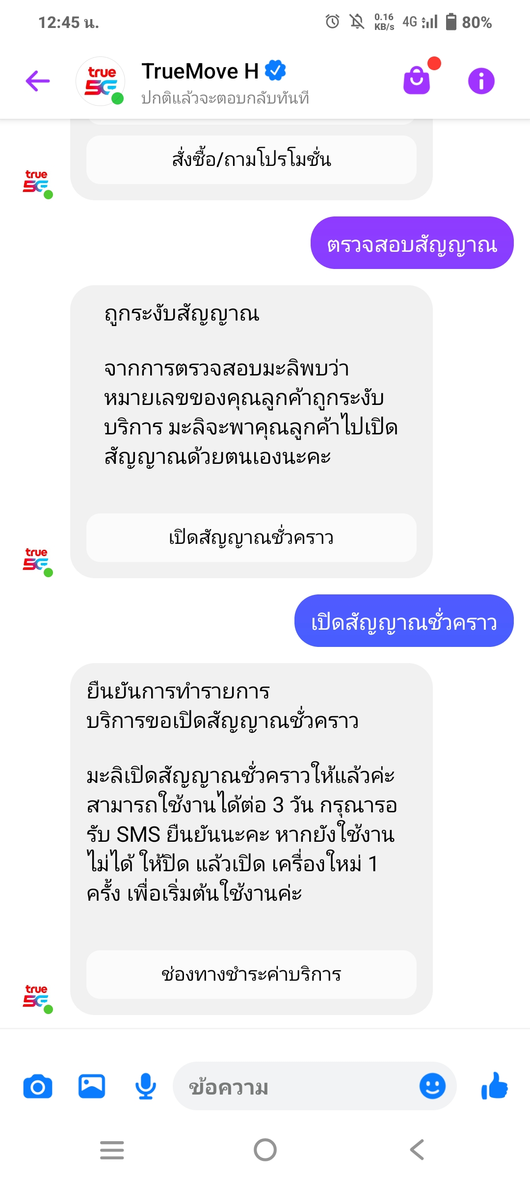 ขอข้อมูลทีค่ะ พอดีอยากเปิดสัญญาณทรูชั่วคราว