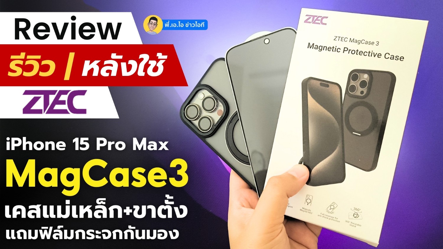 [SR] รีวิวเคส iPhone 15 Pro Max ZTEC MagCase 3 มีวงแหวนแม่เหล็ก ตั้งได้ แถมฟิล์มกระจกกันมอง