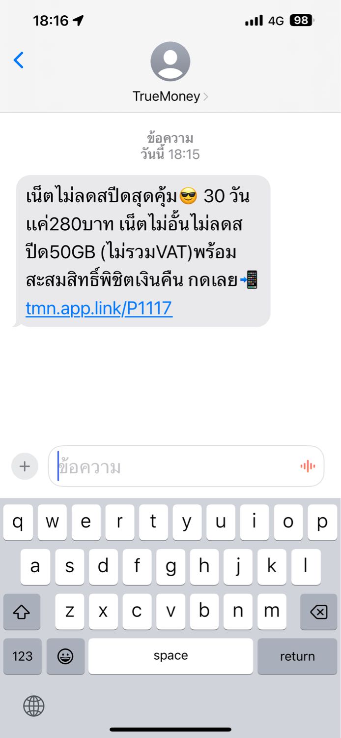 True ID เมื่อไหร่จะเลิกส่งข้อความน่ารำคาญมาซักที