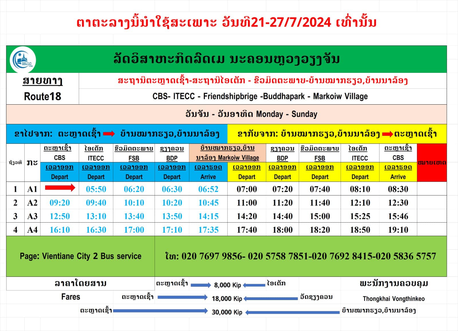 ແຈ້ງອັບເດດ ຕະລາງລົດແລ່ນໃນຕົວເມືອງນະຄອນຫຼວງ สายที่เราๆควรทราบ สาย 14 จากด่านฯ เข้าเมือง สาย 18 ก็แวะด่าน แล้วเข้าเมืองไปทางห้างไอเต็ก สาย 47 วิ่งตรงจากด่านฯ ไปยังสถานีรถไฟลาว-จีน ไม่เข้าเมือง