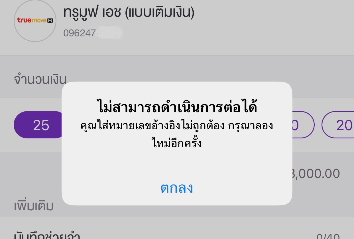 เติมเงินมือถือ ซิมทรู หมายเลขนี้ไม่ได้เกิดจากอะไร?