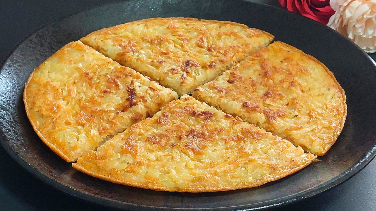 แค่มีมันฝรั่ง2ลูกกับไข่1ฟอง😋#แพนเค้กมันฝรั่ง