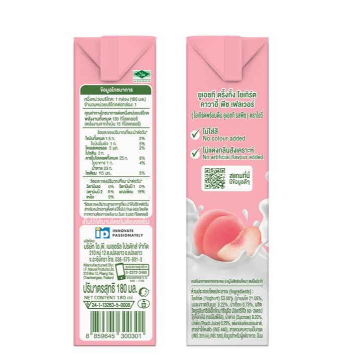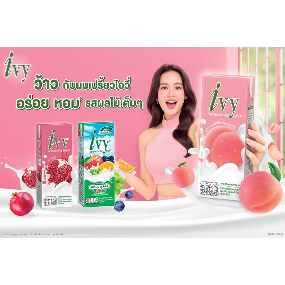 ไอวี่ โยเกิร์ตพร้อมดื่ม ผลิตภัณฑ์นมเปรี้ยว UHT ที่ดีต่อสุขภาพ ผลิตจาก นมโคคุณภาพสูง จากนิวซีแลนด์และสาธารณรัฐเชค ผสมผสาน รสพีชแท้ หอมหวาน สดชื่น สไตล์ญี่ปุ่น