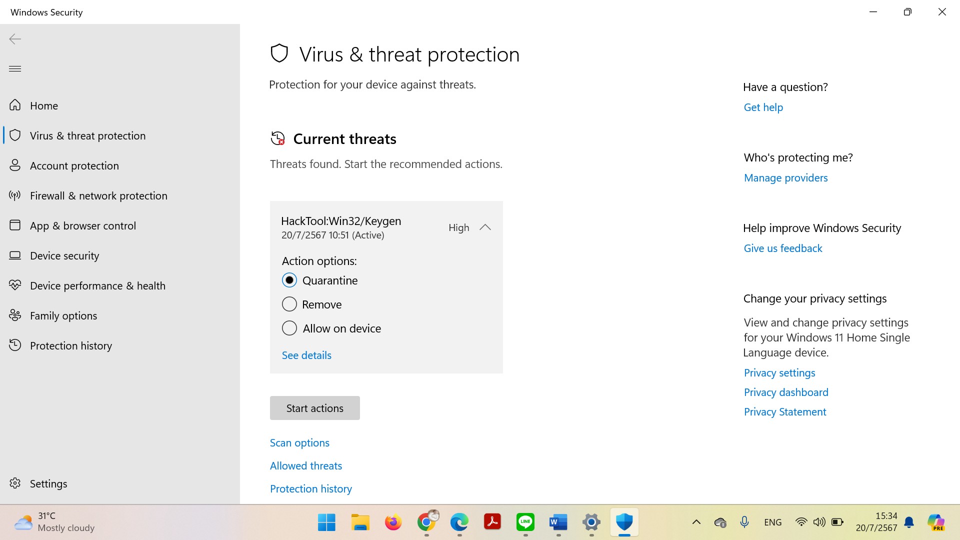 สแกนไวรัสของ Windows แล้วเจอ hacktool:win32/keygen (ตามรูป)