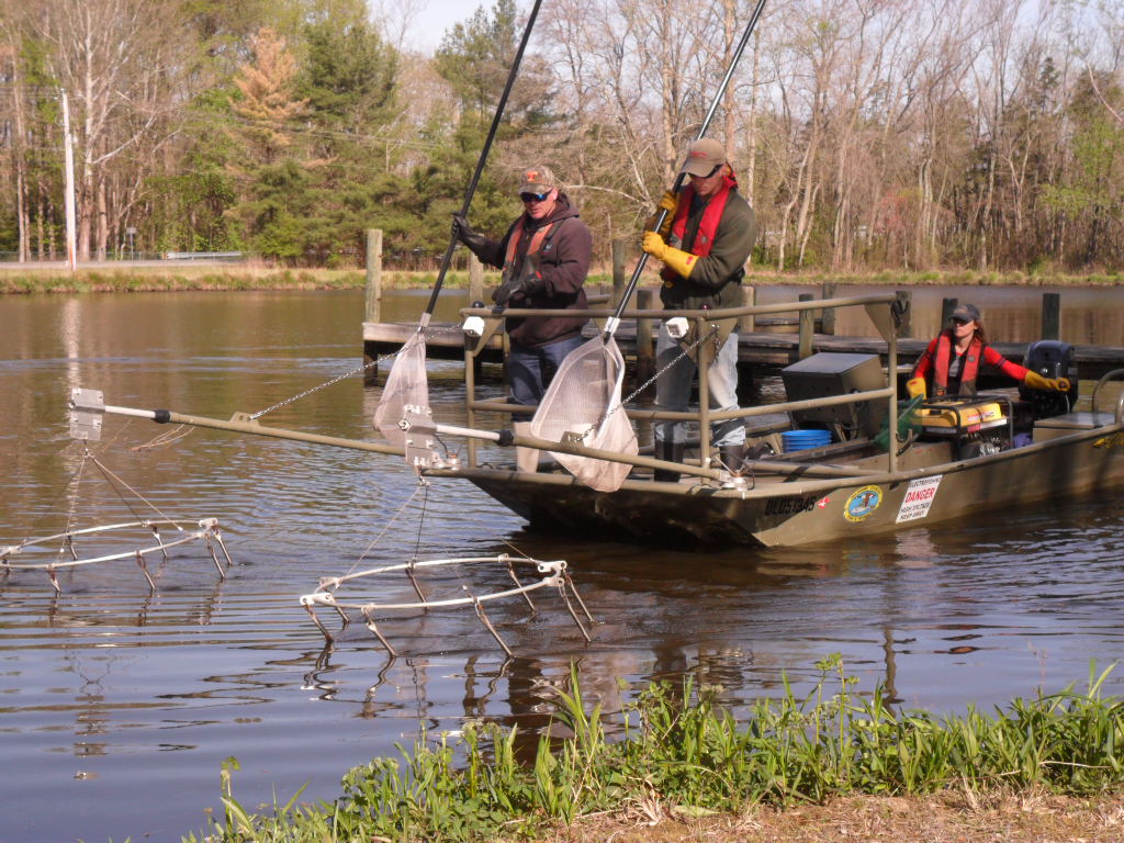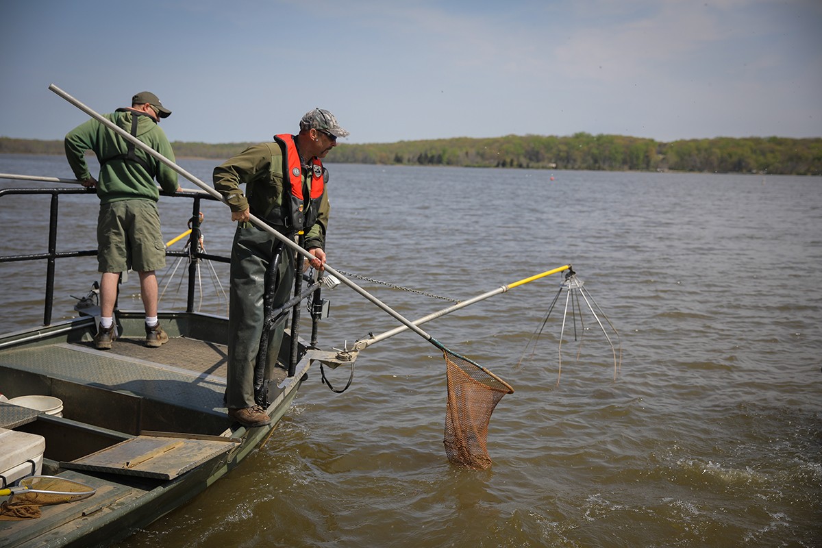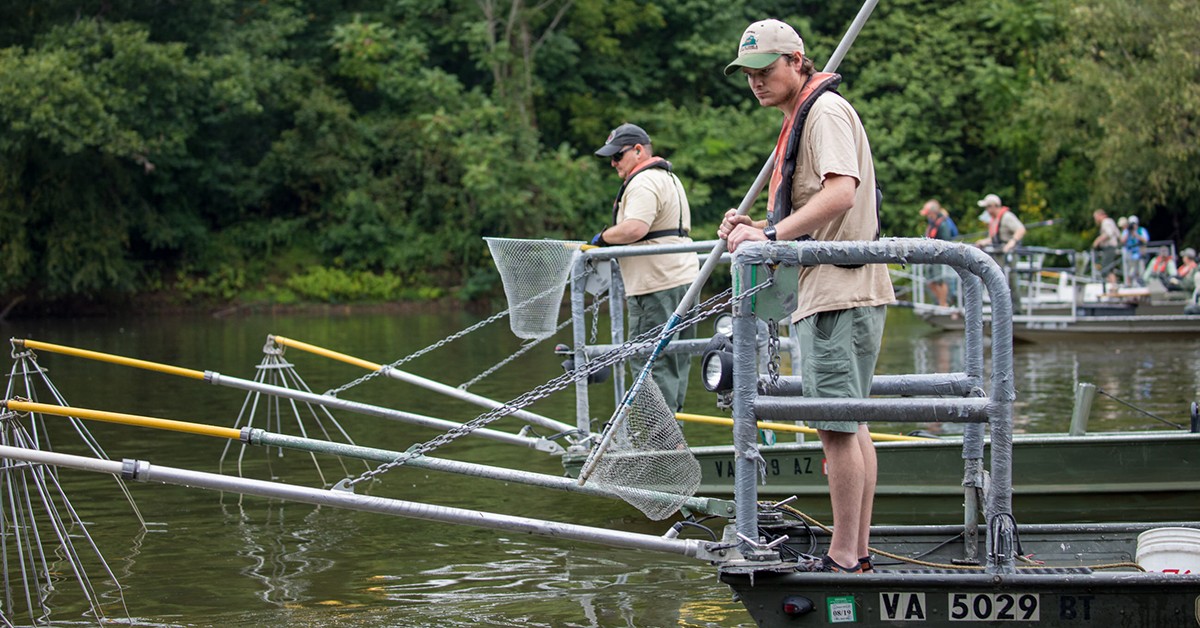 นักชีววิทยาของ DWR ตกปลาด้วยไฟฟ้า