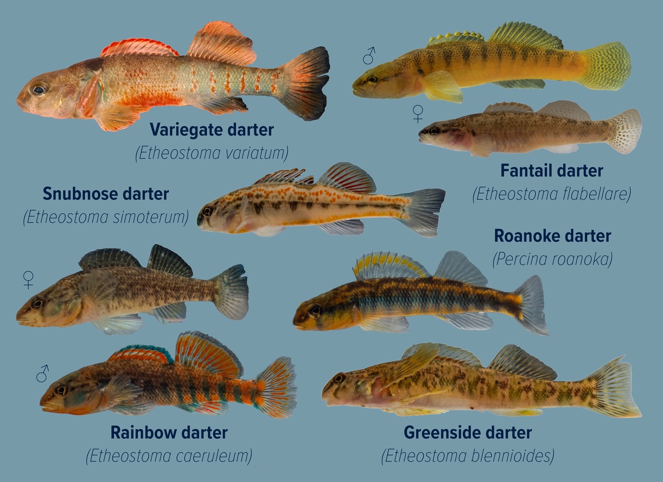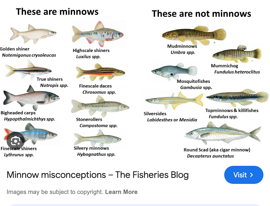 ปลาตัวเล็ก เช่น Minnows fish และ Darters fish