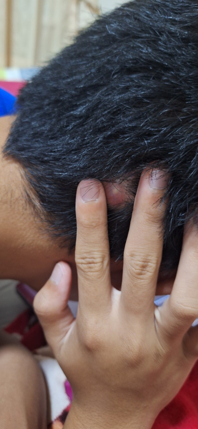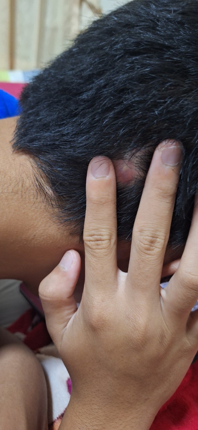 เป็นตุ่มนิ่มๆบนหัวเหมือนสิวตามภาพควรมีวิธีการรักษาที่บ้านไหมครับ หรือควรไปพบแพท