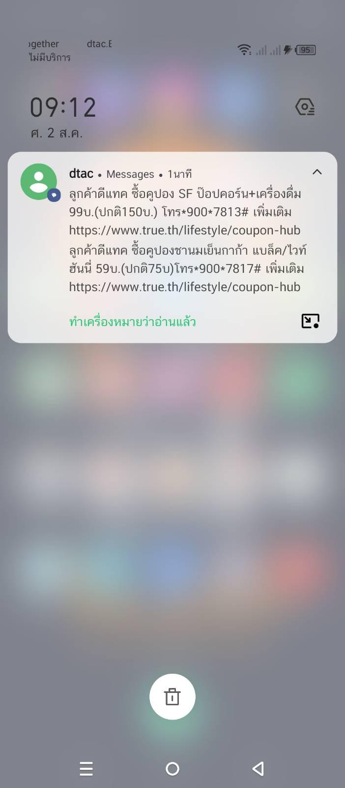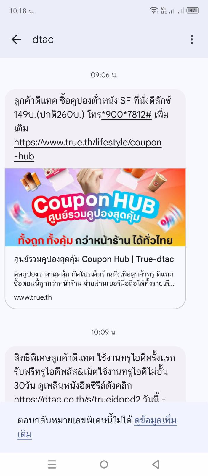 ถูก DTAC เก็บค่าบริการ SMS และถูกระงับสัญญาณ