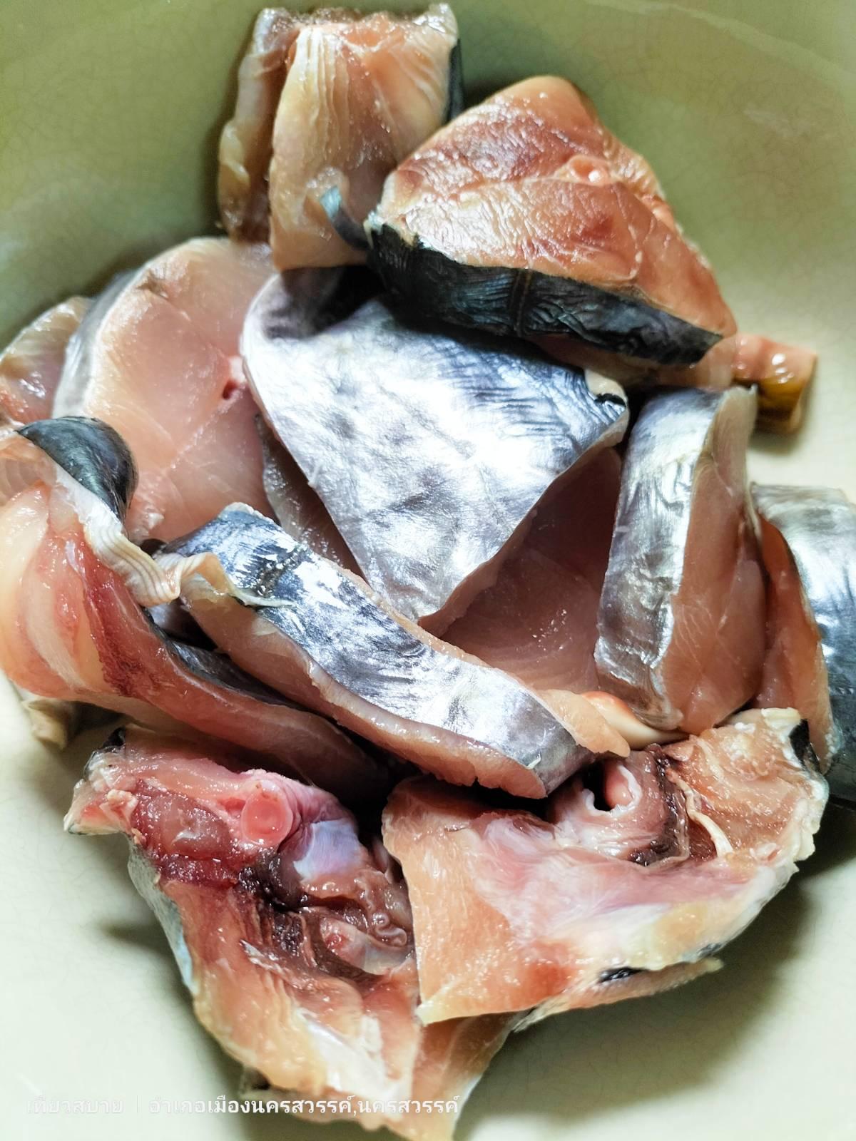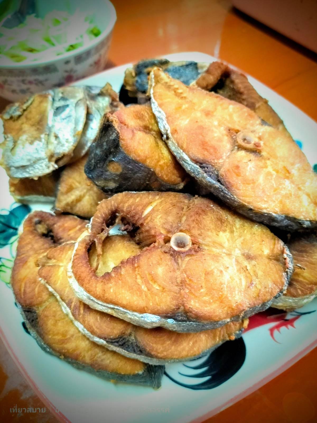 **ปลาชิ้นบางไปนิด เพราะทางร้านทำมาให้ ถ้าใครชอบแบบกรอบนอก นุ่มใน แนะนำให้หั่นชิ้นหนากว่าในภาพนะคะ **