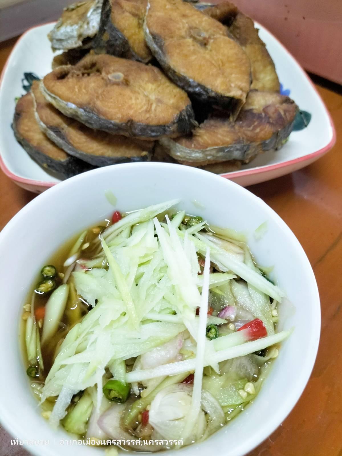 ขอนำเสนอ เมนูฟินๆ "ยำมะม่วงปลาอินทรีทอด"