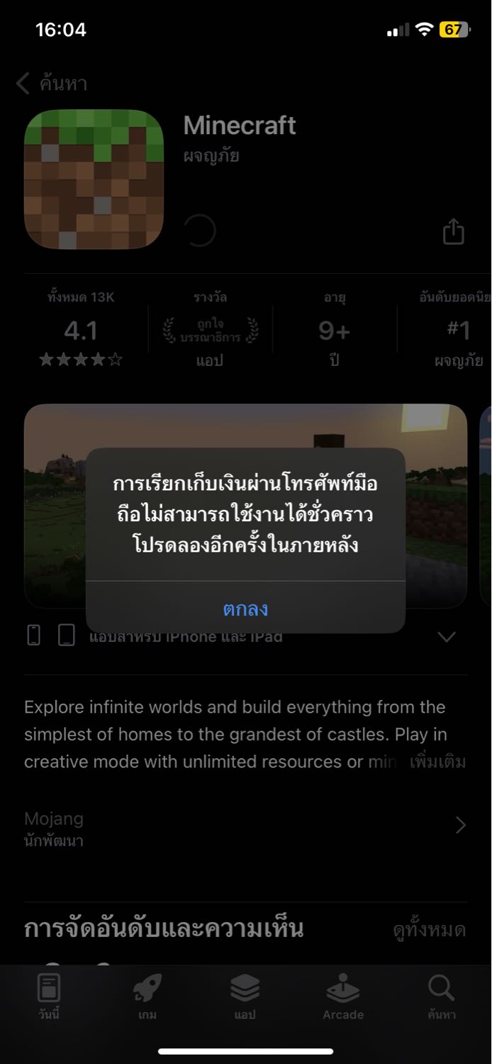 ซื้อเกมminecraftจากapp store แล้วเรียกเก็บเงินจากตังในเบอร์โทรศัพท์แต่ไม่ได้แอพ!?