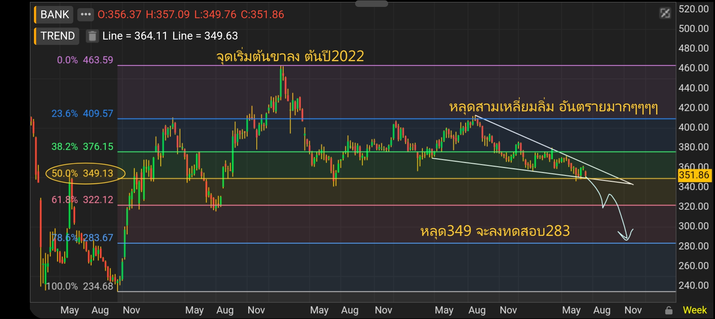 กลุ่ม bank เป็นขาลงมายาวนาน เกือบ3ปีแล้ว ตอนนี้ กราฟเข้าสู่จุดวัดใจแล้วครับ ว่าจะพังไม๊