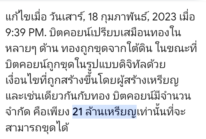 BTC มีจำนวนกัด..ไม่เฟ้อ..แน่นอน