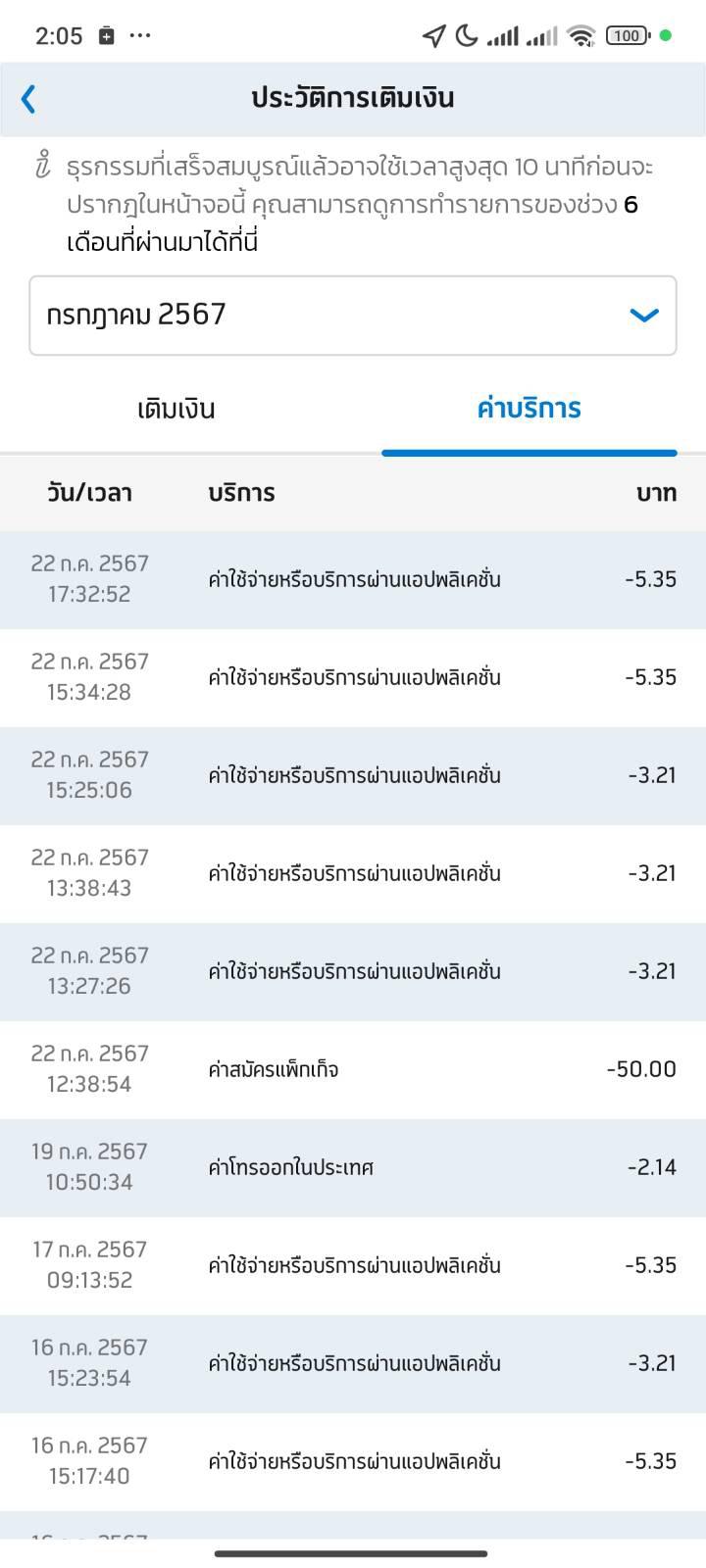 ปล.หักแบบในรูปเลยค่ะ ในแอพเช็คย้อนหลังได้6เดือน มันก็โดนตลอดเวลาที่เติมเงินทิ้งไว้