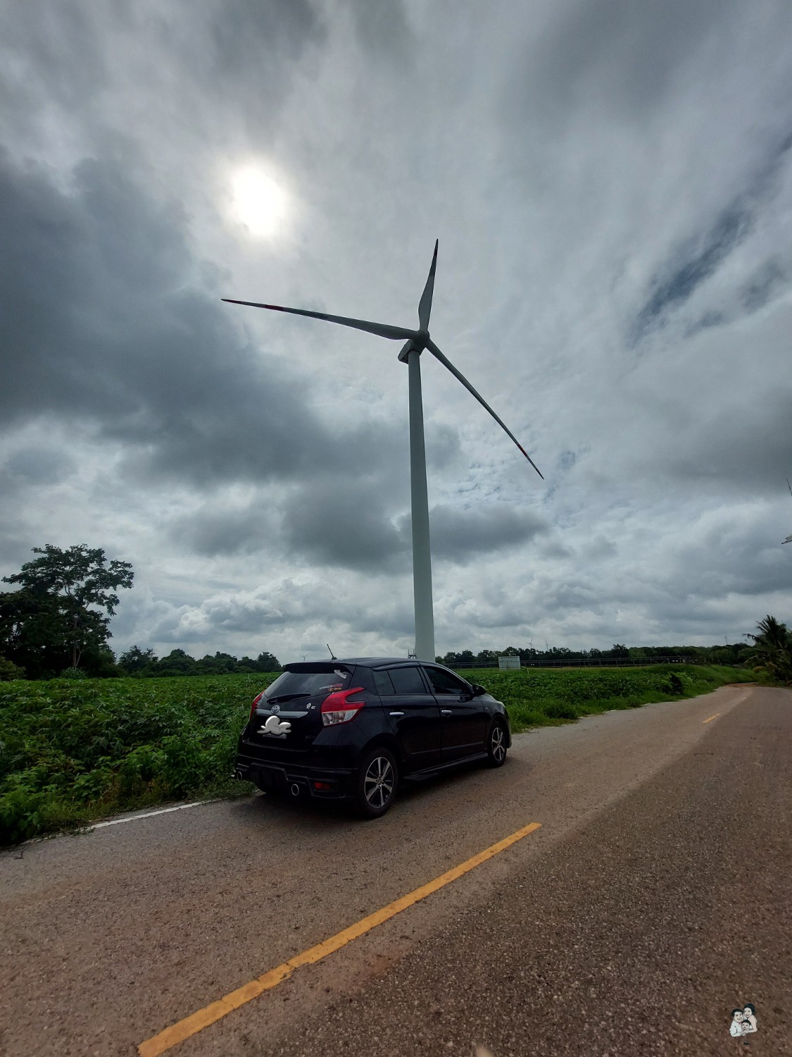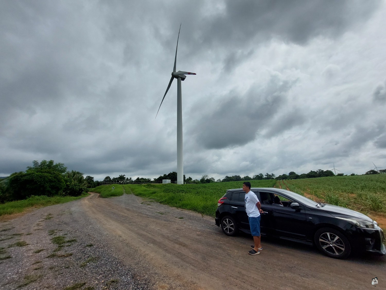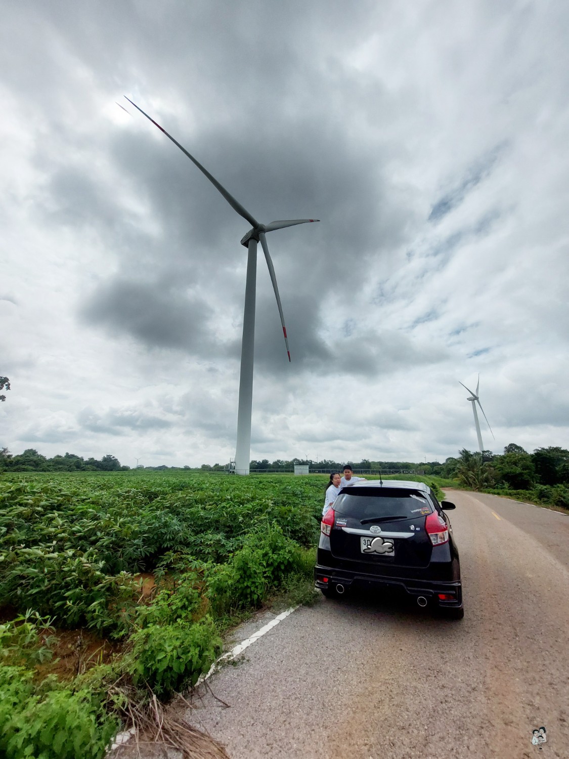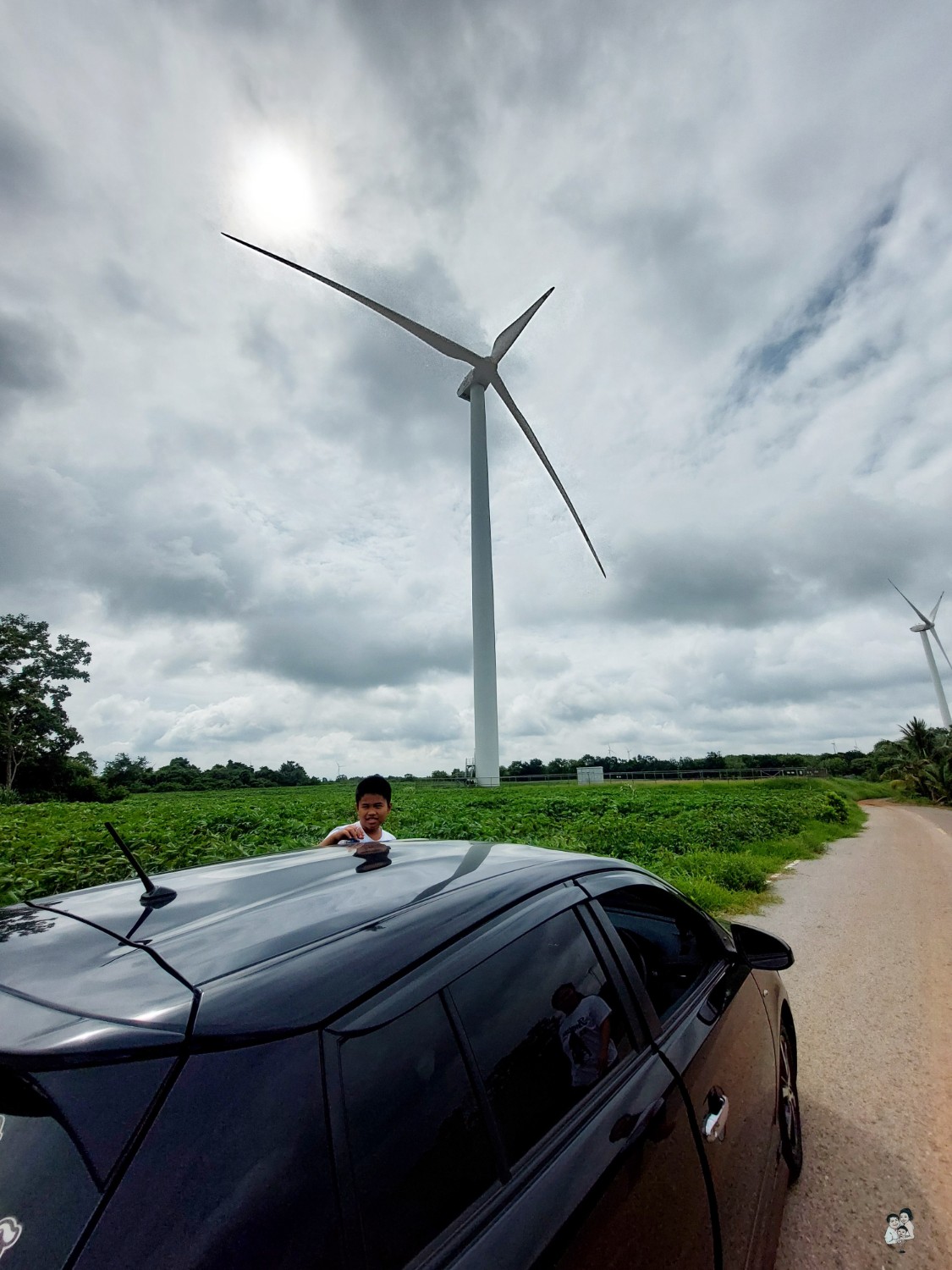 ผ่านกังหันลม เปิด GPS ก็ได้พบสถานที่นี้ครับ เด็กตื่นเต้นซะ มันใหญ่โตมาก มันหมุนได้งัย