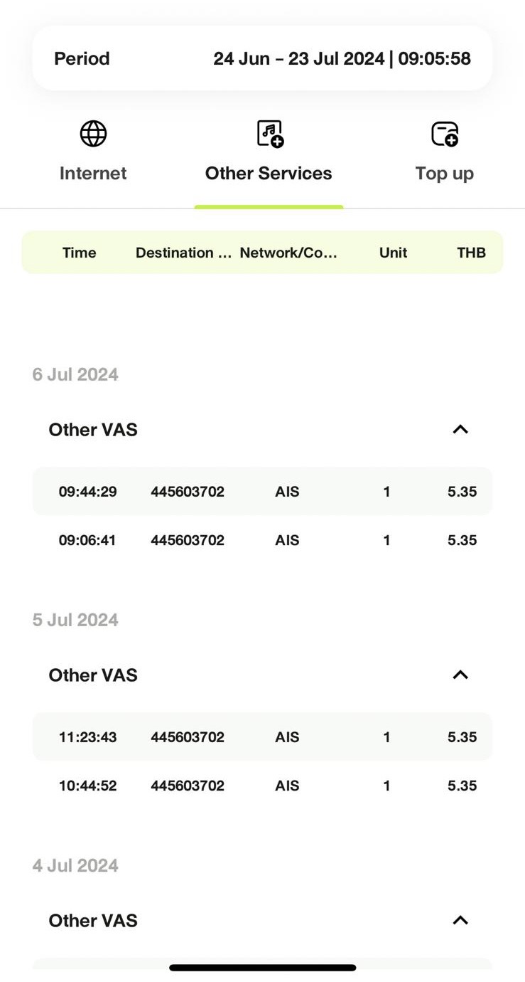 บริการเสริม AIS ด้านล่างนี้คือบริการอะไรครับ มือถือของคุณพ่อ ใช้โปรเดือนละ 200 บาทแต่โดนตัดเงินเกินทุกเดือน พอผมมาตรวจสอบ เจอบริการเสริมด้านล่างตัดเงินทุกวัน เท